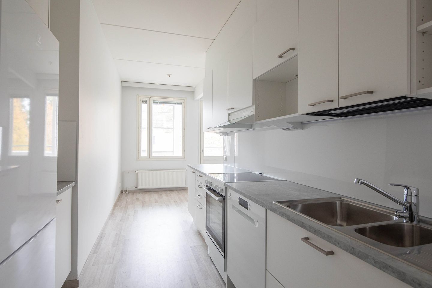 Tämä 3. kerroksen viihtyisä ja tilava kolmio on juuri peruskorjattu. Kaapistot ja lattiat ovat vaaleansävyisiä ja kylpyhuoneen lattia on tummanharmaa laatta. Peruskorjauksen yhteydessä kaikkien 2.-3. kerroksen asuntojen parvekkeet lasitetaan.