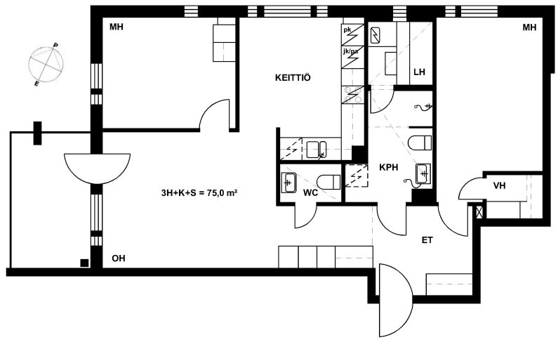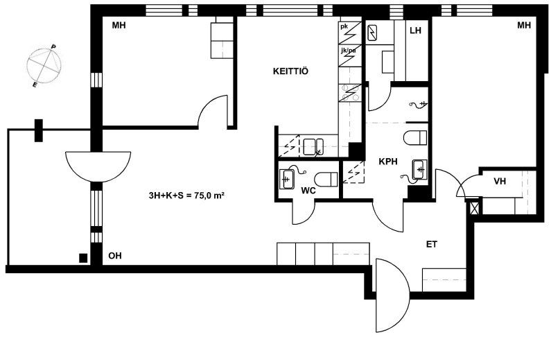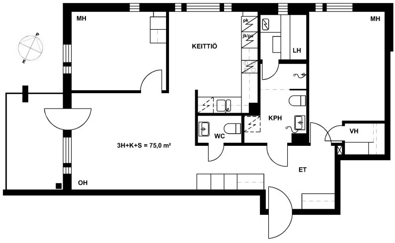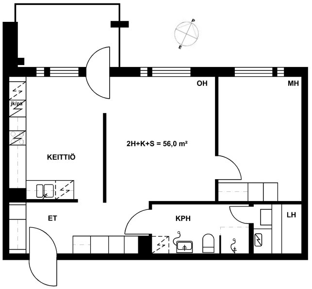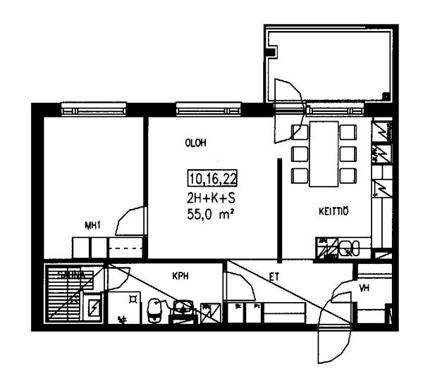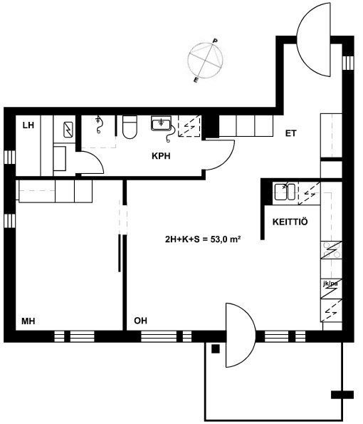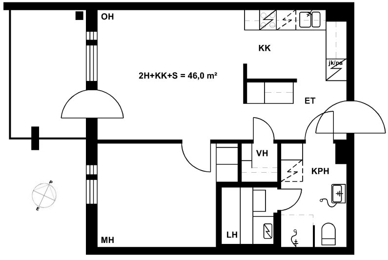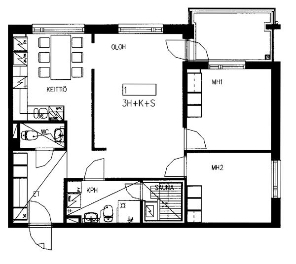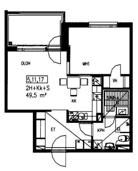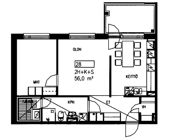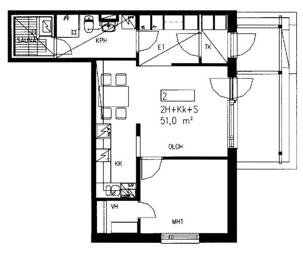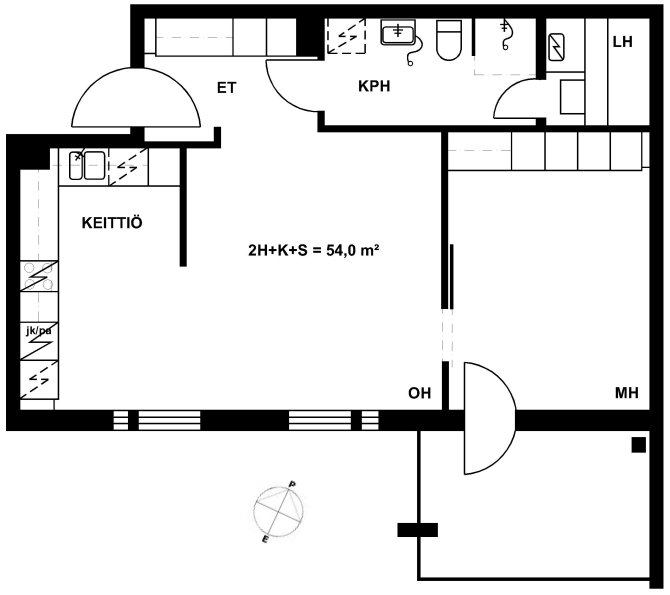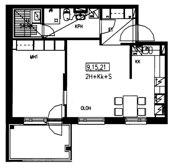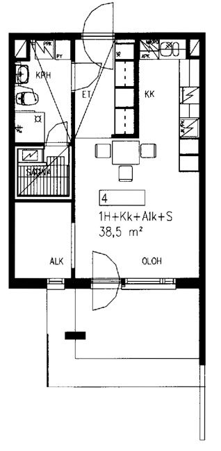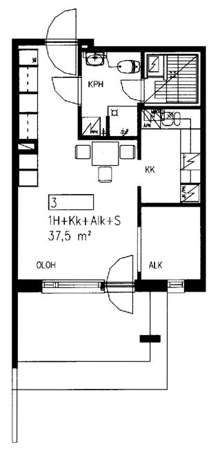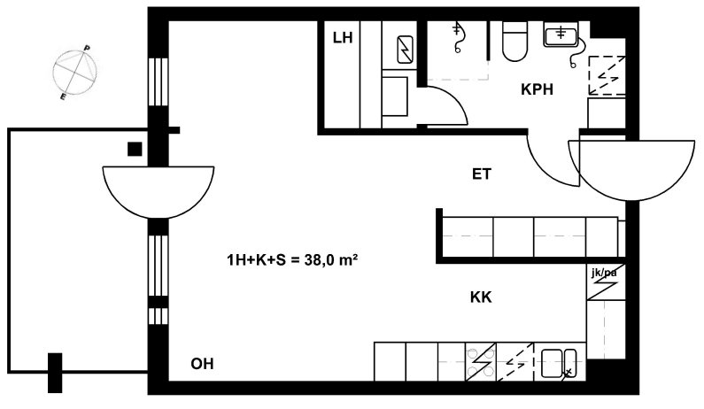 38,5 m2, 1H+KK+S