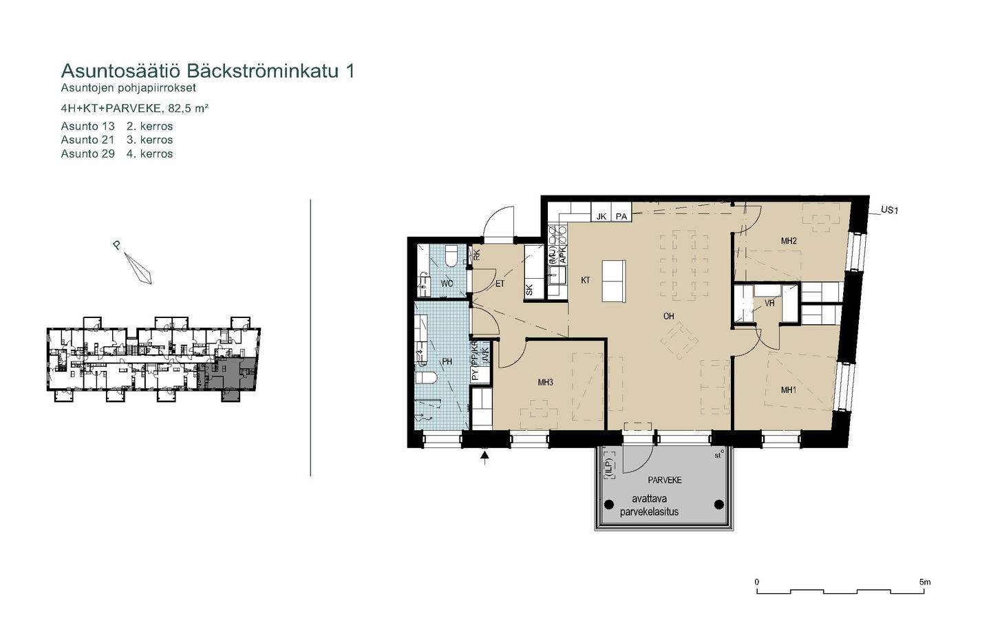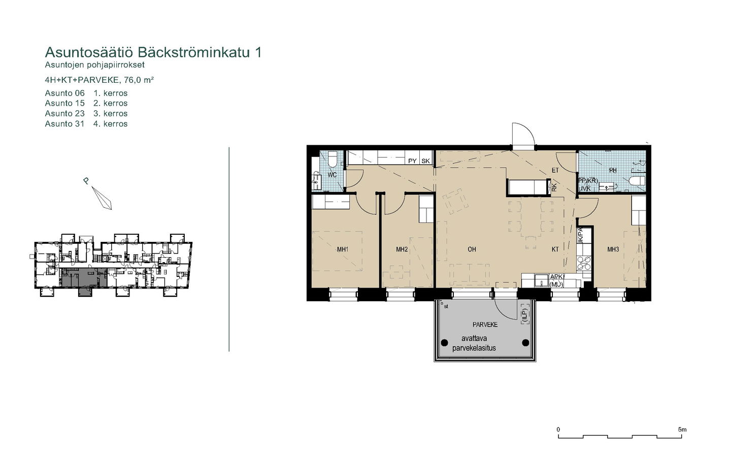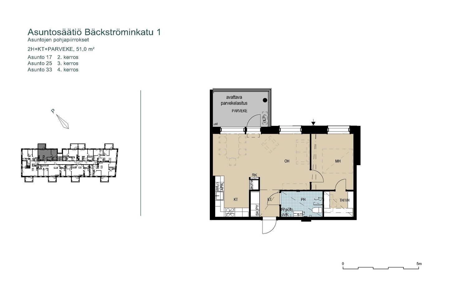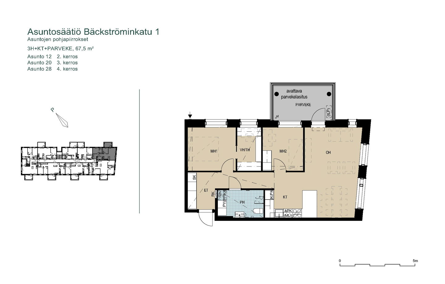 2025 valmistuneet uudet kodit asettuvat aurinkoiselle rinnetontille metsän ja puistoalueen viereen. Valoisissa asunnoissa on suuret ikkunat ja avarat näkymät lähiluontoon. Talossa on neljä kerrosta ja hissi. Osassa kolmioita ja isompia asuntoja on vaatehuone, toisissa jopa kaksi vaatehuonetta. Osassa vaatehuoneita on ikkuna tai isot pariovet, jolloin niistä voi tehdä vaikka työhuoneen. Isot lasitetut parvekkeet tuovat koteihin toimivaa lisätilaa läpi vuoden.