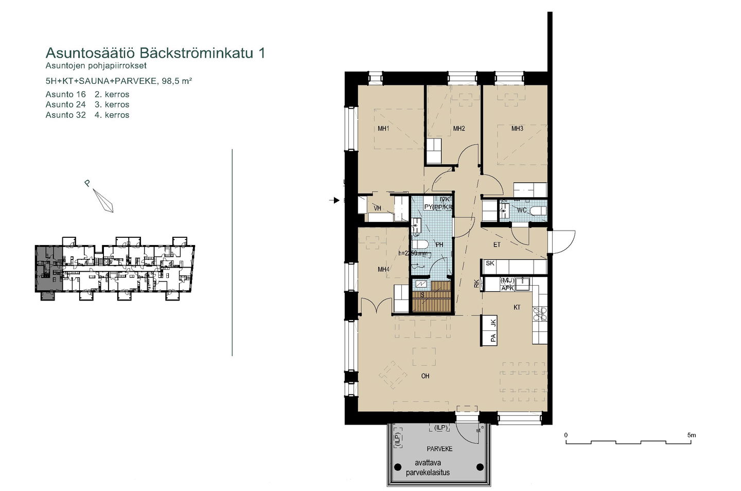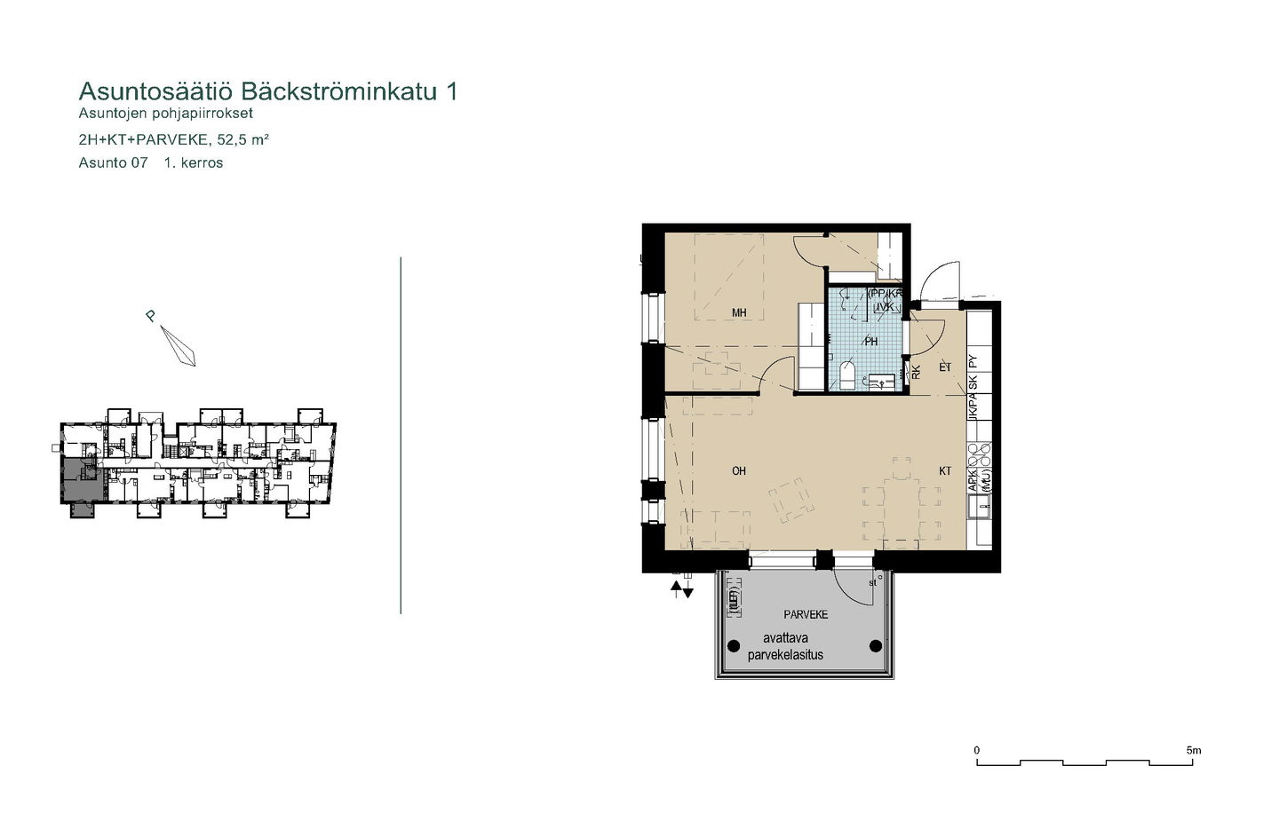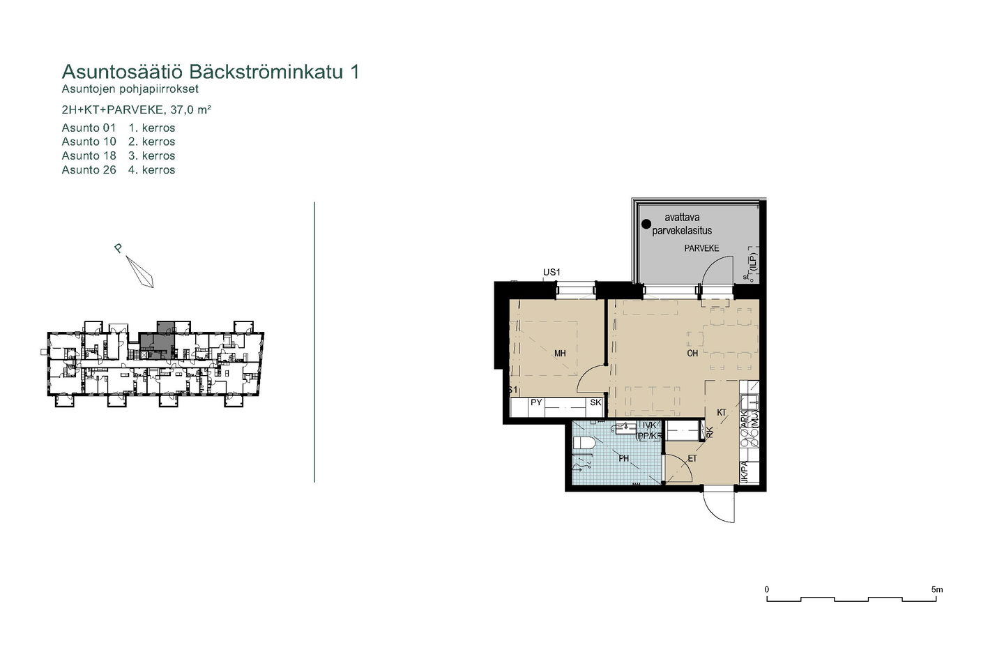 Tervetuloa nauttimaan luonnonläheisestä ja kodikkaasta asumisesta! 2025 valmistuneet uudet kodit asettuvat aurinkoiselle rinnetontille metsän ja puistoalueen viereen. Valoisissa asunnoissa on suuret ikkunat ja avarat näkymät lähiluontoon. Talossa on neljä kerrosta ja hissi. Osassa kolmioita ja isompia asuntoja on vaatehuone, toisissa jopa kaksi vaatehuonetta. Osassa vaatehuoneita on ikkuna tai isot pariovet, jolloin niistä voi tehdä vaikka työhuoneen. Isot lasitetut parvekkeet tuovat koteihin toimivaa lisätilaa läpi vuoden. Asuntojen materiaalien sävyt vaihtelevat kerroksittain, asunnon sävyt saattavat poiketa kuvissa olevista. Talon alimmasta kerroksesta löytyvät talosauna pukuhuoneineen, kerhohuone, kuivaushuone sekä irtaimisto-, ulkoiluväline- ja lastenvaunuvarastot. Pyöräilijöitä ilahduttaa pyöräkatos sekä pyörän pesu- ja huoltopaikka. Katolla on aurinkopaneelit ja viihtyisällä pihalla istutuslaatikot viherpeukaloiden iloksi. Tontin reunaan sijoittuvilla autopaikoilla on varaus sähköautojen lataamiselle. Julkisen liikenteen linja 29 kulkee Ojalan alueelle. Se kulkee pääsääntöisesti 30 min välein, talvikaudella ruuhka-aikoina 15 minuutin välein. Muutaman sadan metrin päässä on upouudet Ojalan päiväkoti ja koulu leikkipihoineen. Lyhyen kävely- tai pyöräilymatkan päässä Kangasalan puolella on myös Lamminrahkan uusi koulu ja urheilukentät. Takapihalta lähtee laajat ulkoilureitit. Lisäksi lähellä on esimerkiksi Katajajärven laavu, Halimasjärven uimaranta ja Lamminrahkan kuntoportaat. Naapurustoon nousee myöhemmin väljästi matalampia pientaloja ja maksimissaan saman korkuisia kerrostaloja. Varaa oma esittelyaikasi: tarja.seeslahti@asuntosaatio.fi tai puh 020 161 2421
