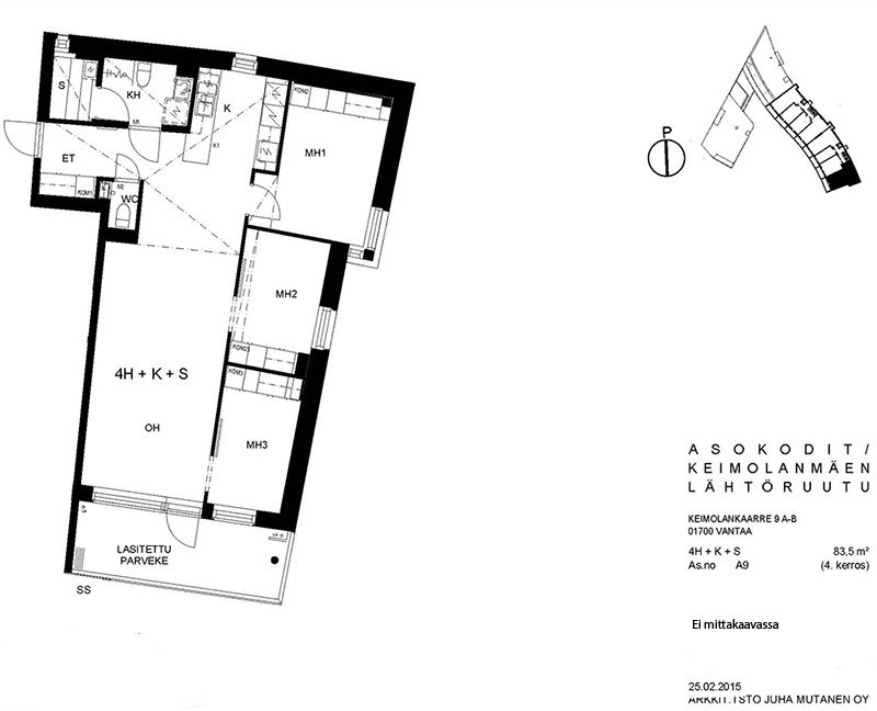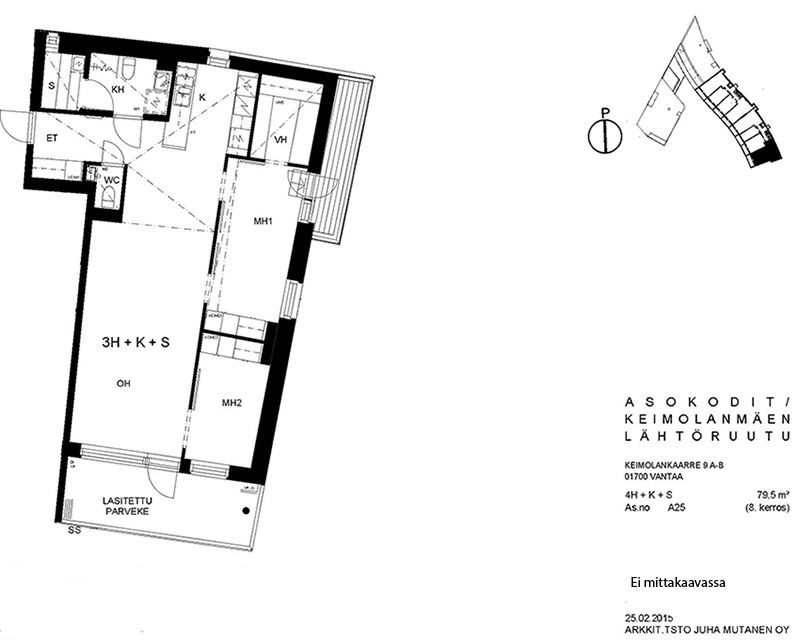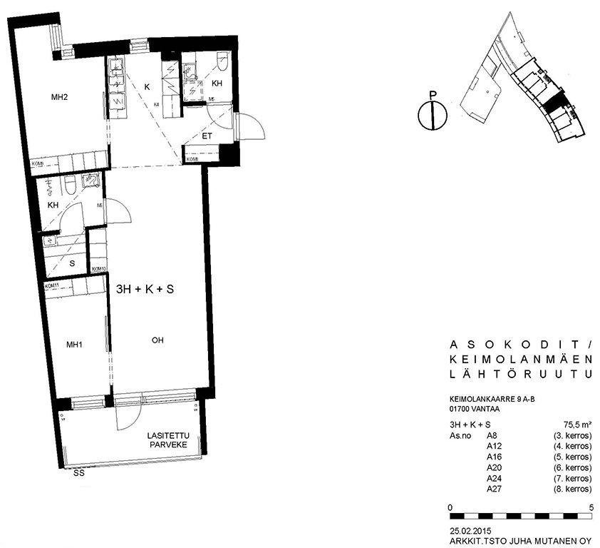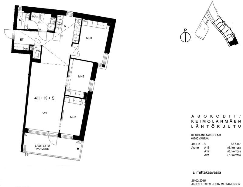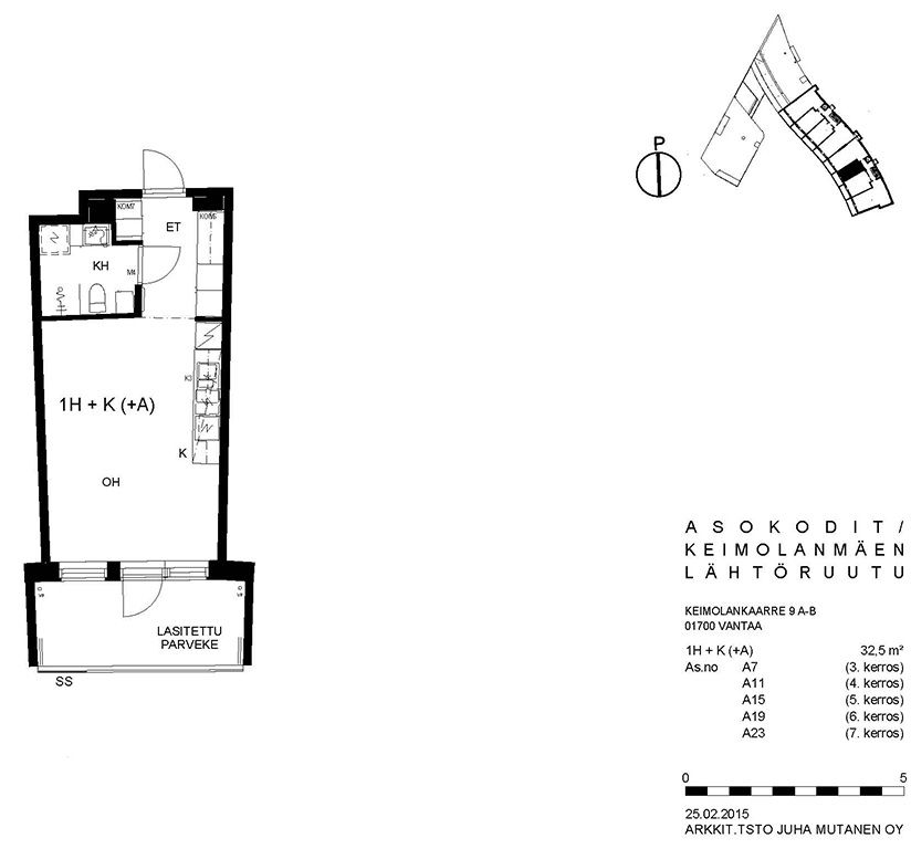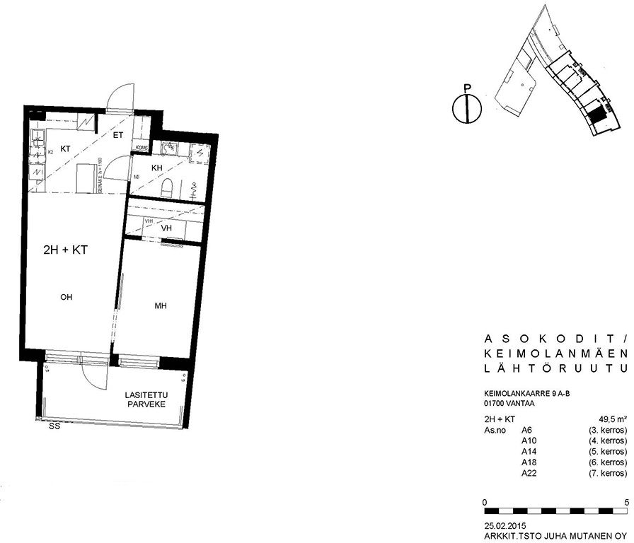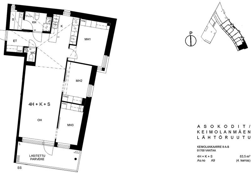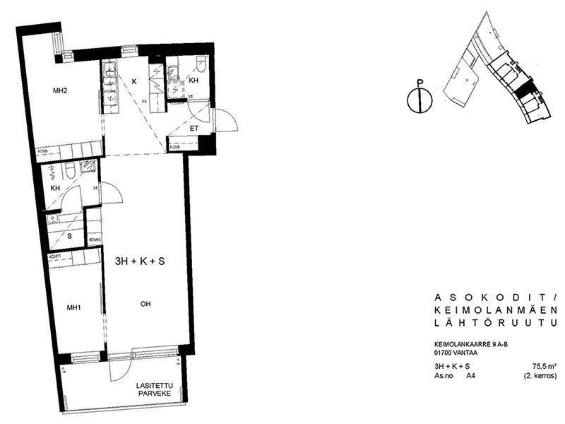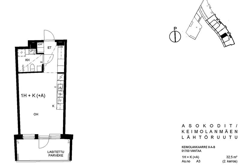 Viihtyisä kerrostalokohde Keimolanmäessä Hämeenlinnanväylän kupeessa noin kolmen kilometrin päässä Kehä III:sta pohjoiseen. Aaltoileva talonmuoto, jonka kaikissa asunnoissa on lasitetut parvekkeet. Lattiapinnat ovat lautalaminaattia ja kosteissa tiloissa on laatoitus. Lisäksi kylpyhuoneessa on lattialämmitys. Kaikissa ikkunoissa on sälekaihtimet. Talosauna vilvoittelutiloineen sijaitsee kahdeksannessa kerroksessa. Asuntosäätiön viereisen yhtiön kanssa yhteiskäytössä olevat pesula ja kerhohuone sijaitsevat C- ja D-portaissa. Alueella on jätteiden syväkeräysjärjestelmä. Lähellä on päiväkoti, koulu, Pikku-Keimolan puisto ja Isosuon luonnonsuojelualue. Juna-asema ison tien toisella puolella Kivistössä, jossa mm. kauppakeskus.