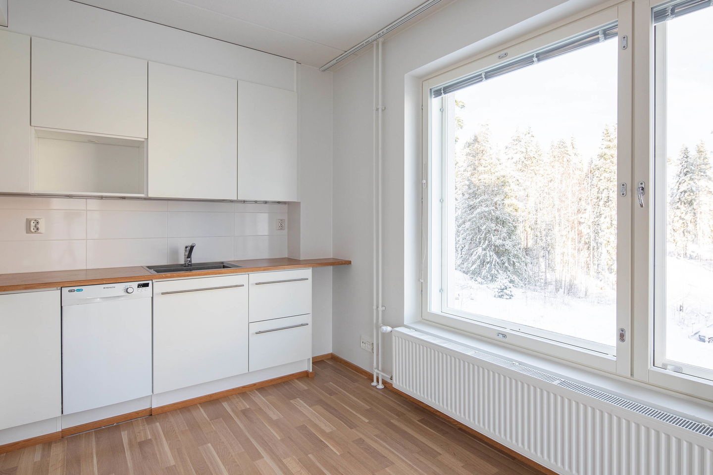 Valoisa ja tilava nurkkahuoneisto rauhallisella alueella metsän vieressä, ranskalainen parveke ja ikkunat itä/etelä suunnassa. Tämä neljännen kerroksen kaksio on hiljainen ja viihtyisä, sen neliöt on hyvin käytetty ja kaappitilaa on runsaasti. Erinomaiset ulkoilumahdollisuudet heti kotiovelta, talvella myös hiihtoladut.