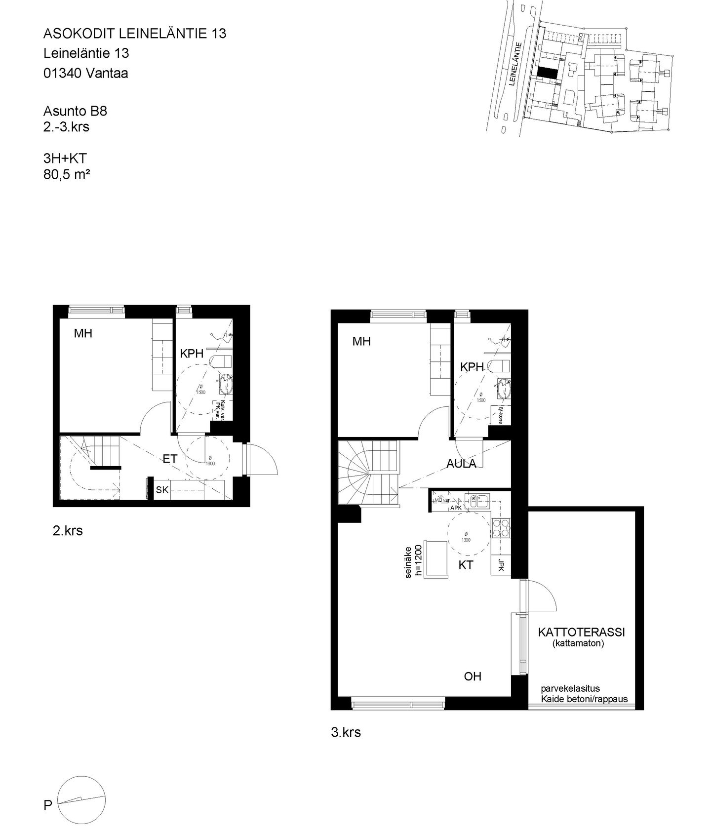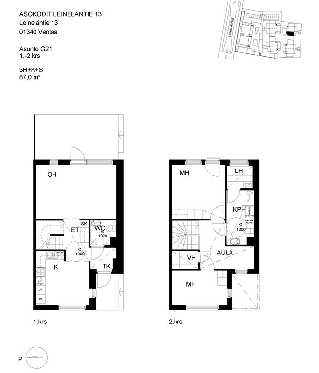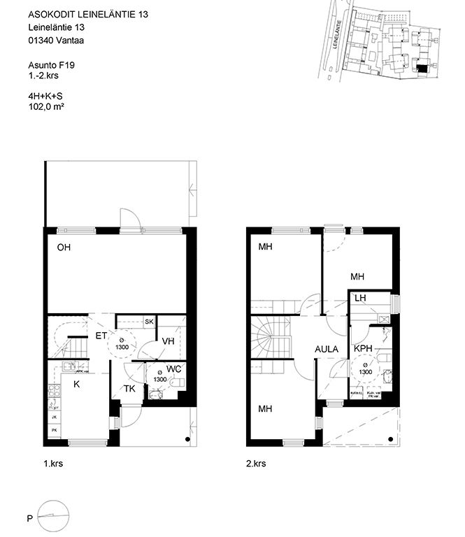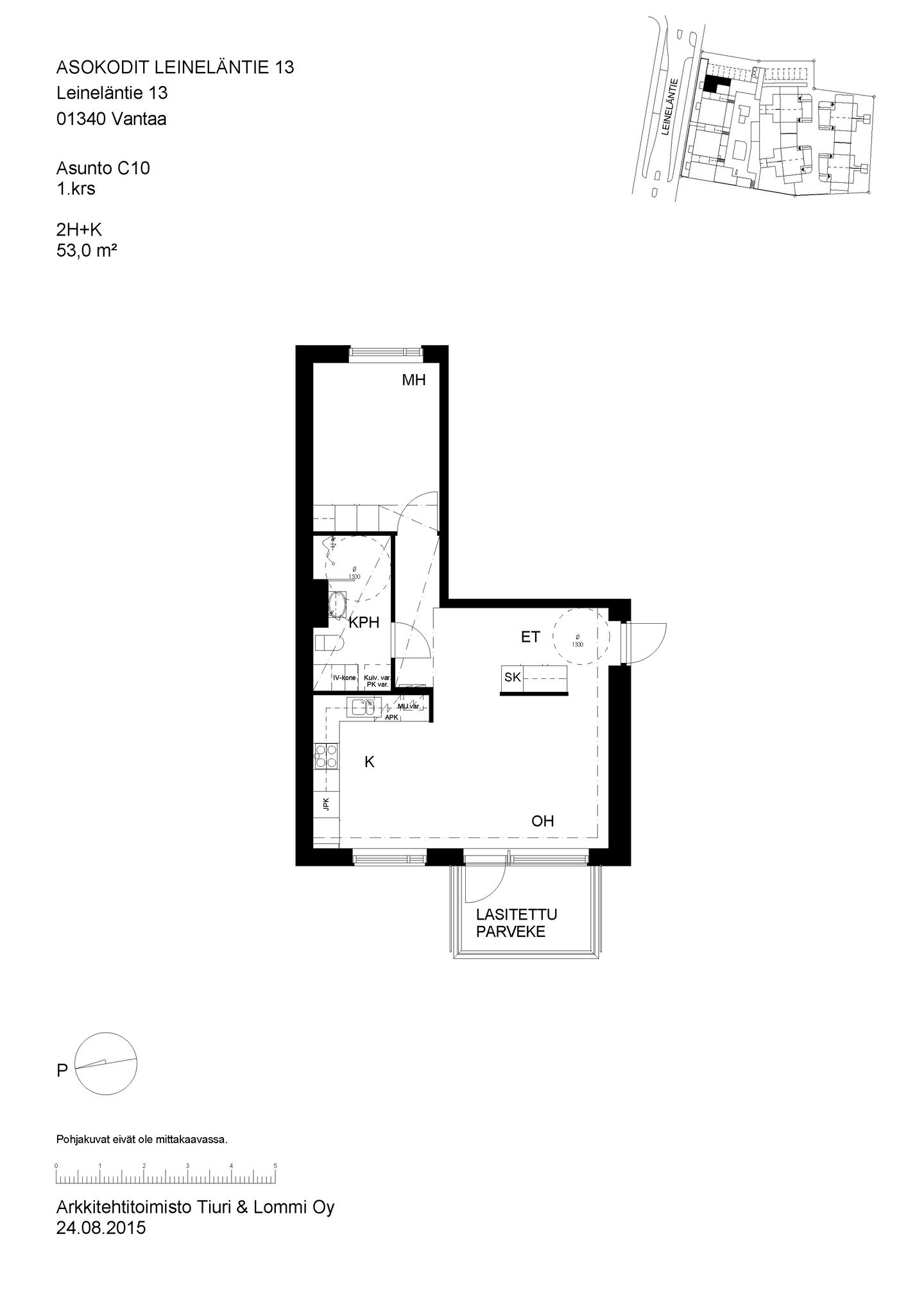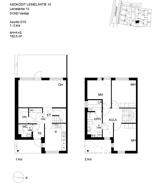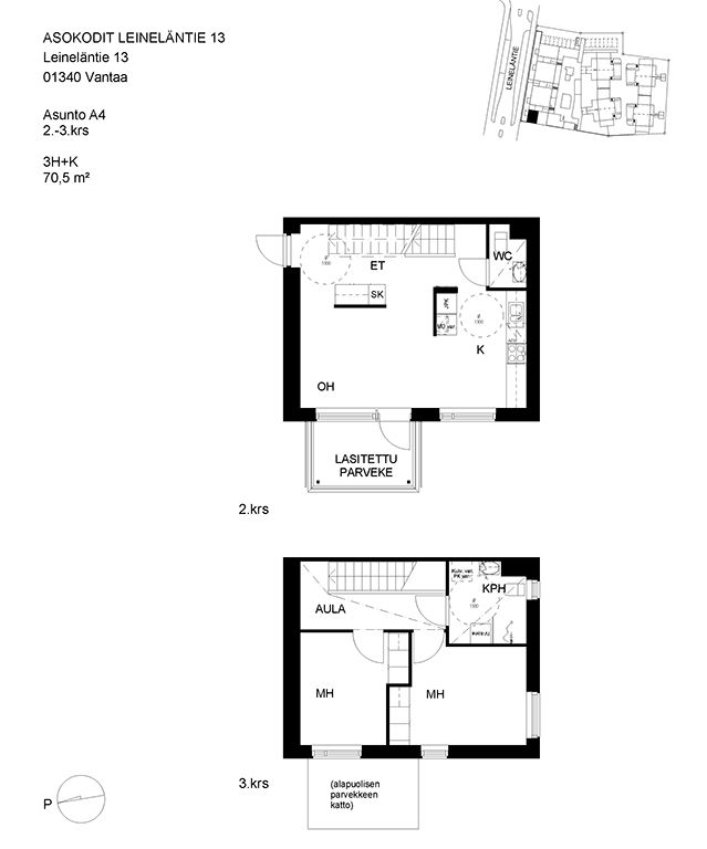 Pienkerrostaloasunnoista ja paritaloasunnoista koostuva kohde Leinelässä.