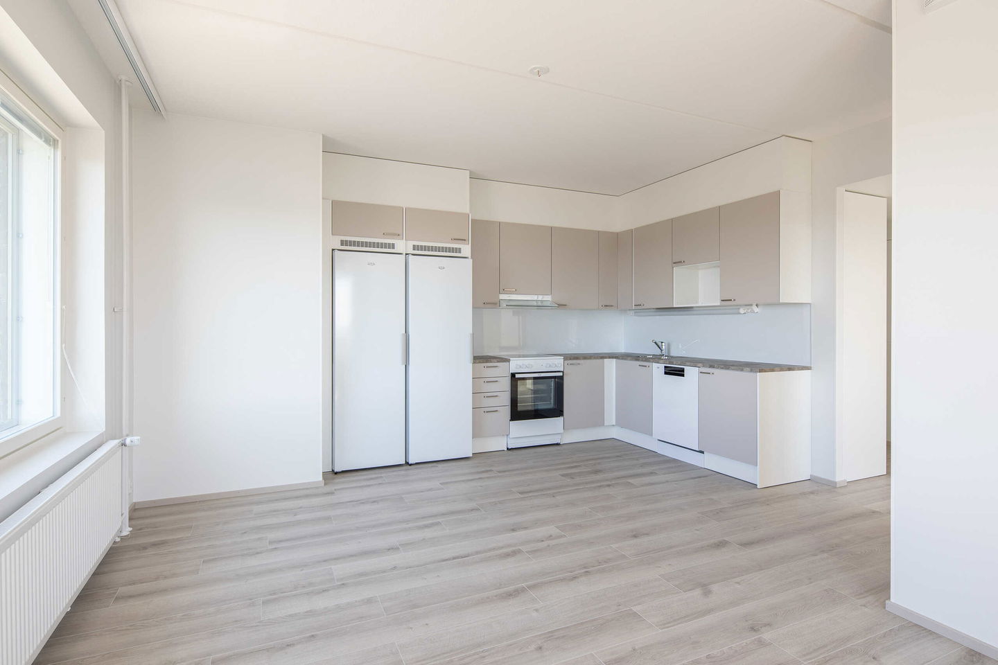 Tähän avaraan ja toimivapohjaiseen kotiin tulvii valoa kahdesta ilmansuunnasta: etelästä ja lännestä.
