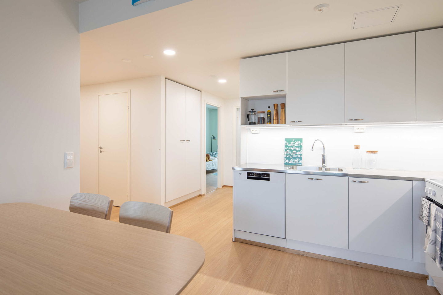 Vaaleaan, kahdeksankerroksiseen talon C-rappuun valmistuu 38 hyväpohjaista vuokrakotia huhtikuussa. Hyvin suunnitelluista asunnoista löytyy toimiva koti kaikenlaisiin elämänvaiheisiin, niin sinkkuasukkaalle kuin isommallekin perheelle. Sälekaihtimet ja astianpesukone on kaikissa huoneistoissa valmiiksi asennettuna. Tilavat kylpyhuoneet sekä useimpien huoneistojen vaatehuoneet lisäävät asumisen mukavuutta ja kaikkiin asuntoihin kuuluu 50 Mbit/s laajakaistayhteys. Lisää oleskelutilaa antavat lasitetut parvekkeet. Viuhkamaisen rakennuksen laaja, aurinkoinen piha-alue avautuu lännen suuntaan ja osasta ylimpien kerroksien asunnoista avautuu näkymät merelle asti yli Finnoon lintualtaiden. Ulkoiluväline- ja lastenvaunuvarastot löytyvät talon kellarikerroksesta. Ensimmäisessä kerroksessa on kerhotilat, talopesula kuivaushuoneineen sekä talosaunat, joista yhden yhteydessä on myös vilvoitteluterassi. Talon pysäköintipaikat ovat pysäköintihallissa talon alla. Kulkemista helpottaa talon moderni, sähköinen lukitusjärjestelmä. Talon kahdessa muussa rappukäytävässä on asumisoikeuskoteja. Rauhallisen kulmakorttelin viereen on suunnitteilla päiväkoti ja koulu ja läheltä löytyy myös Kiikaripuisto. Metro- ja bussiyhteys sekä arjen lähipalvelut ovat mukavan kävelymatkan päässä. Finnoonkartanonkadulla viihtyy koko perhe!