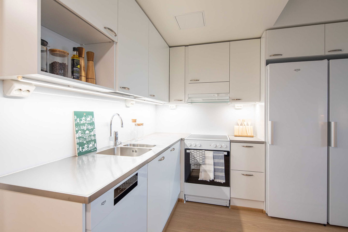 Vaaleaan, kahdeksankerroksiseen talon C-rappuun valmistuu 38 hyväpohjaista vuokrakotia huhtikuussa. Hyvin suunnitelluista asunnoista löytyy toimiva koti kaikenlaisiin elämänvaiheisiin, niin sinkkuasukkaalle kuin isommallekin perheelle. Sälekaihtimet ja astianpesukone on kaikissa huoneistoissa valmiiksi asennettuna. Tilavat kylpyhuoneet sekä useimpien huoneistojen vaatehuoneet lisäävät asumisen mukavuutta ja kaikkiin asuntoihin kuuluu 50 Mbit/s laajakaistayhteys. Lisää oleskelutilaa antavat lasitetut parvekkeet. Viuhkamaisen rakennuksen laaja, aurinkoinen piha-alue avautuu lännen suuntaan ja osasta ylimpien kerroksien asunnoista avautuu näkymät merelle asti yli Finnoon lintualtaiden.