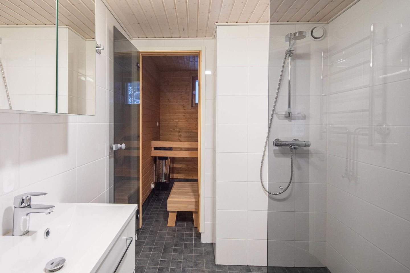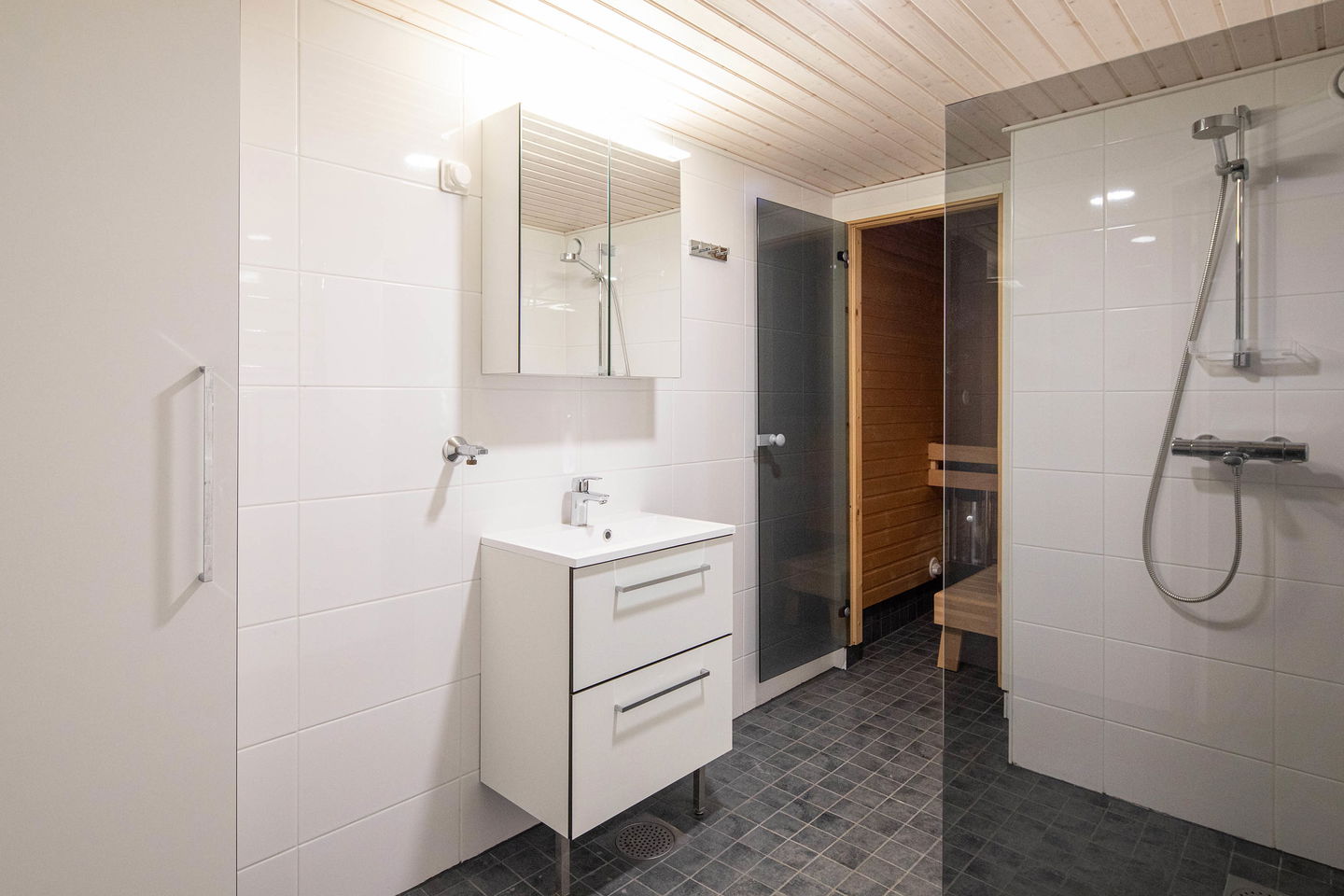 Kylpyhuone on käytännöllinen ja pesukoneliitännällä varustettu, ja lisäksi asunnossa on erillinen wc Oman saunan löylyt kruunaavat asumismukavuuden. Asuntoon on tehty lähes täysi remontti vuonna 2023.