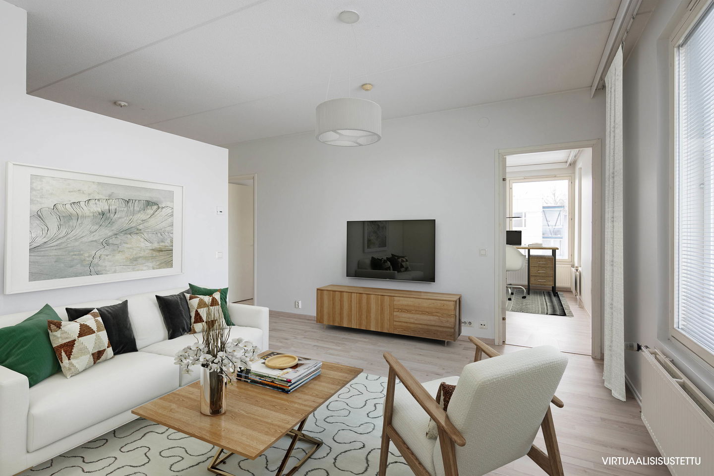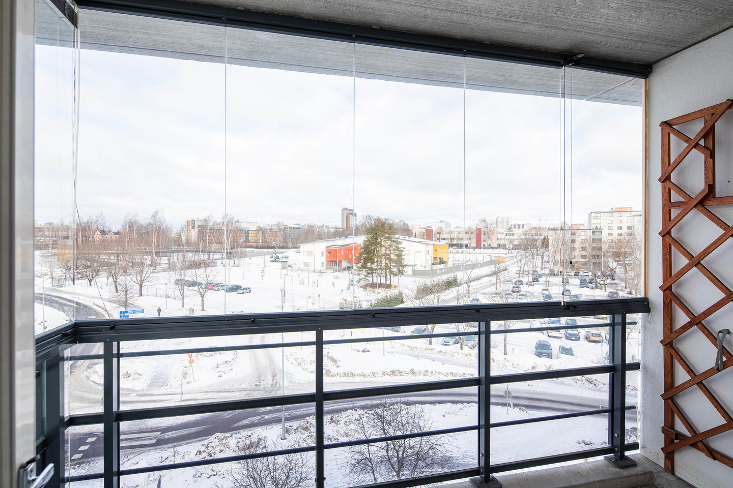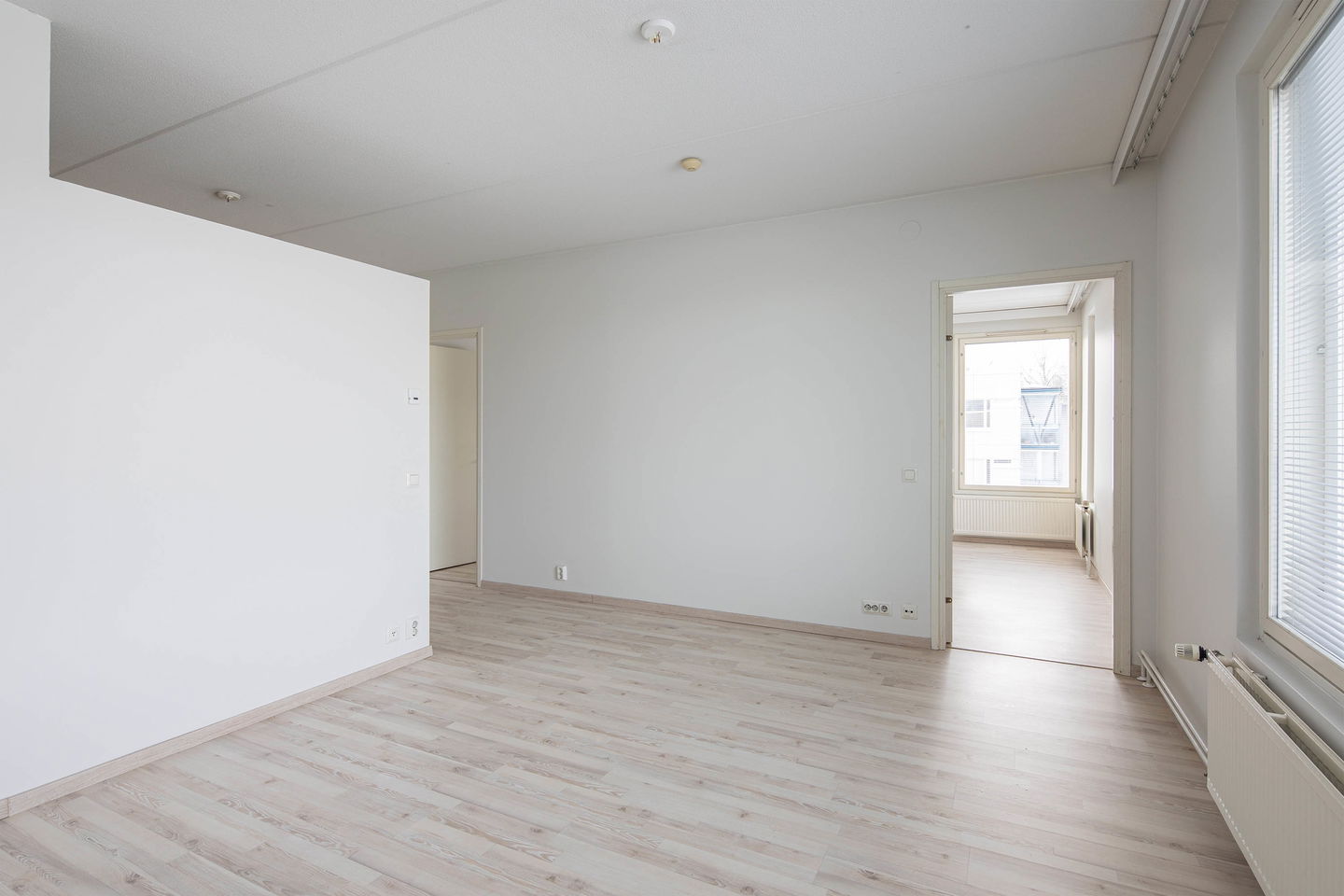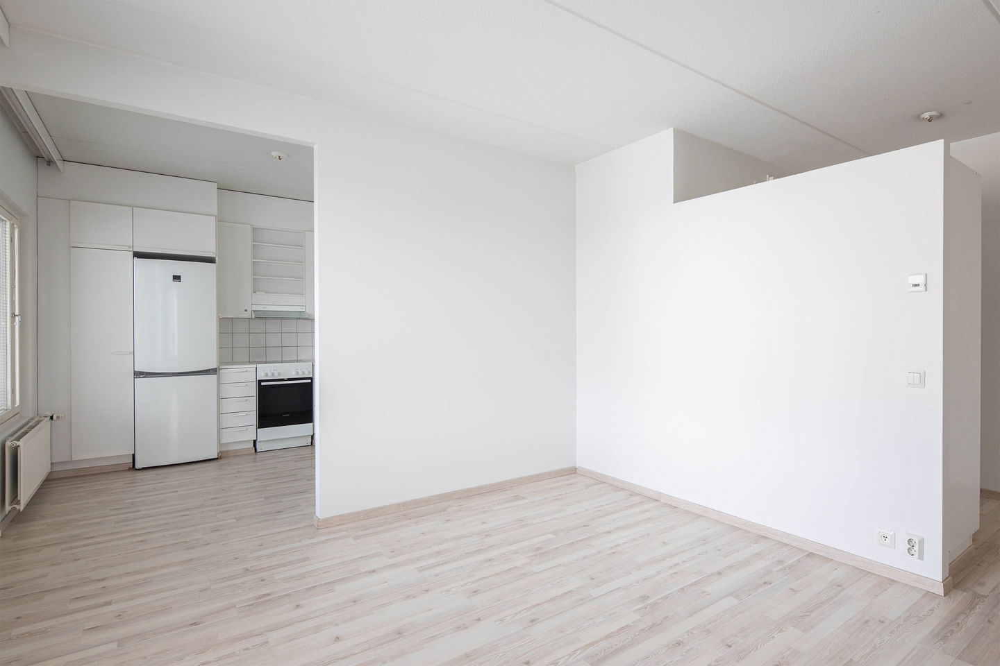 Valoisa ja tilava kolmio omalla saunalla ja parvekkeella. Iso erillinen keittiö tarjoaa runsaasti tilaa ruoanlaittoon ja yhdistyy avaraan olohuoneeseen. Säilytystilaa löytyy sekä molemmista makuuhuoneista että eteisestä.