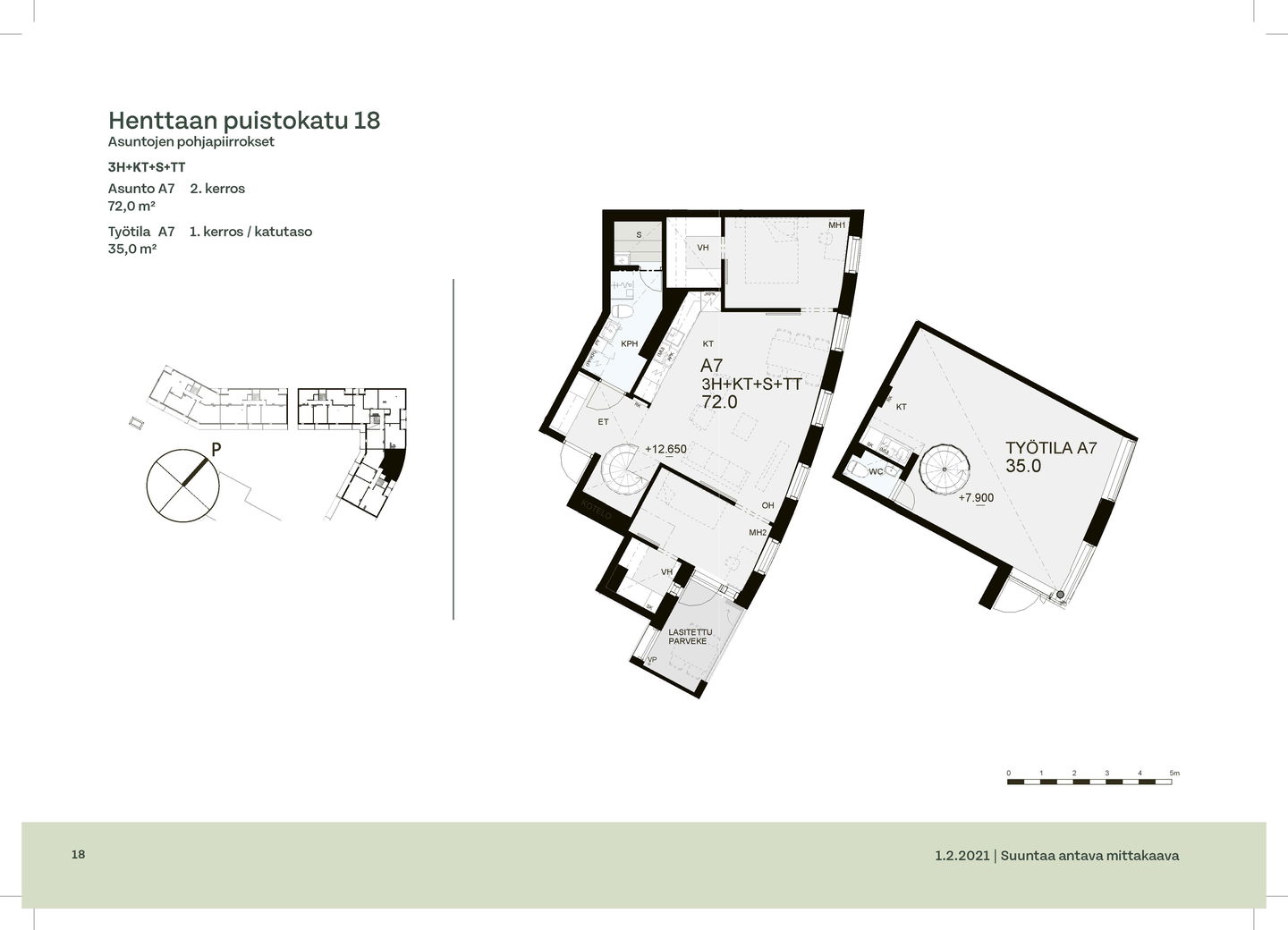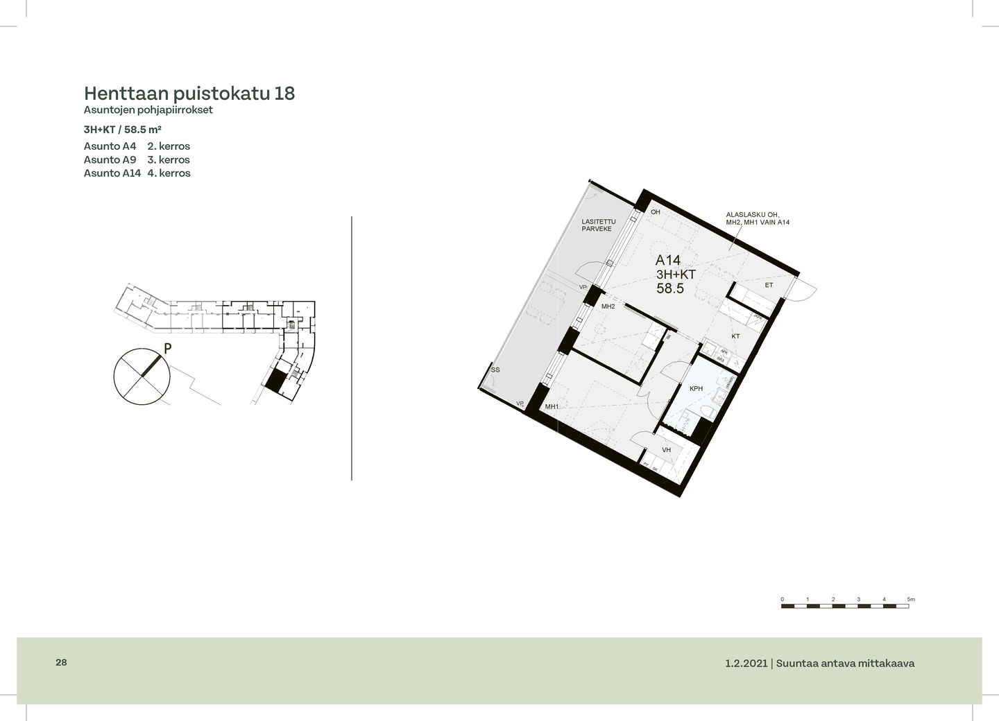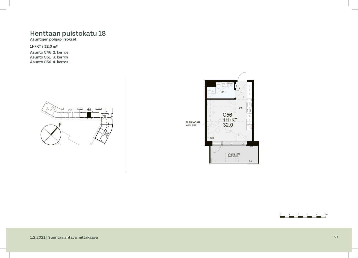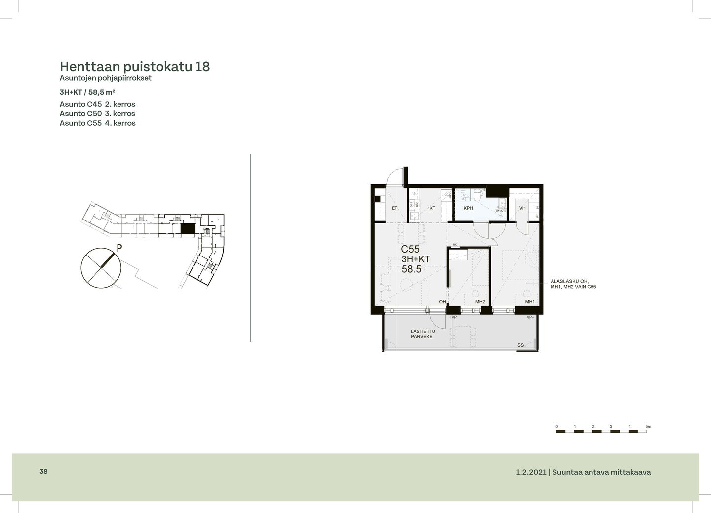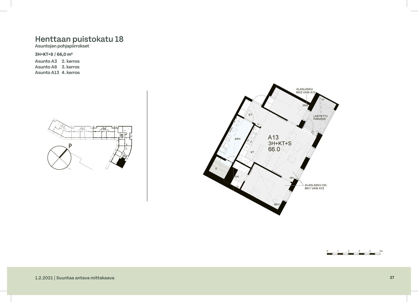 Huoneistot ja pohjakuvat: Henttaan puistokatu 18 A-C, Kerrostalo