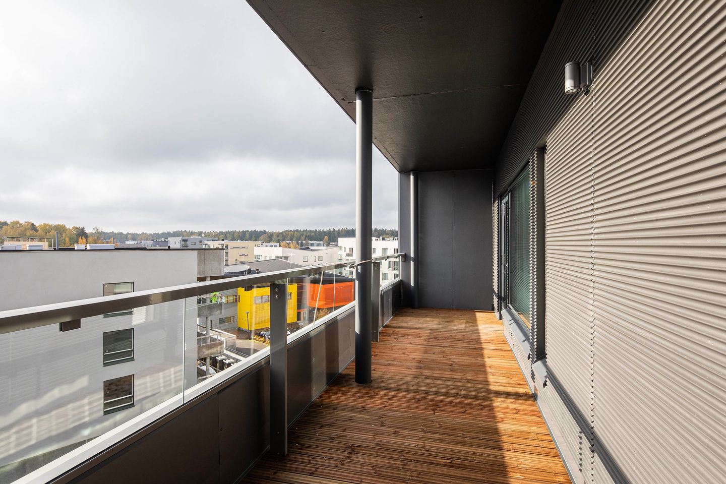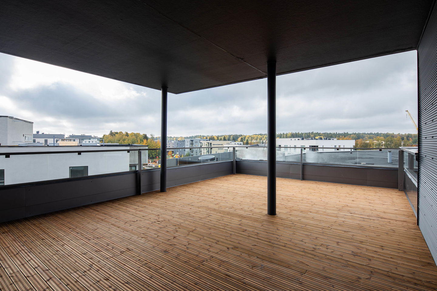 Ensimmäisen kerroksen sisäpihan puoleisissa asunnoissa on terassi. Muissa asunnoissa lasitetut parvekkeet.