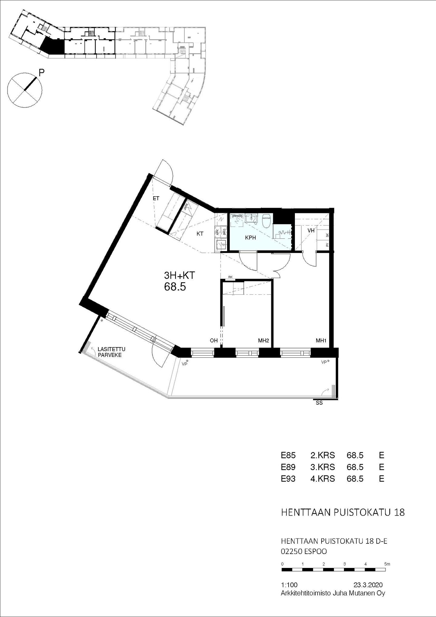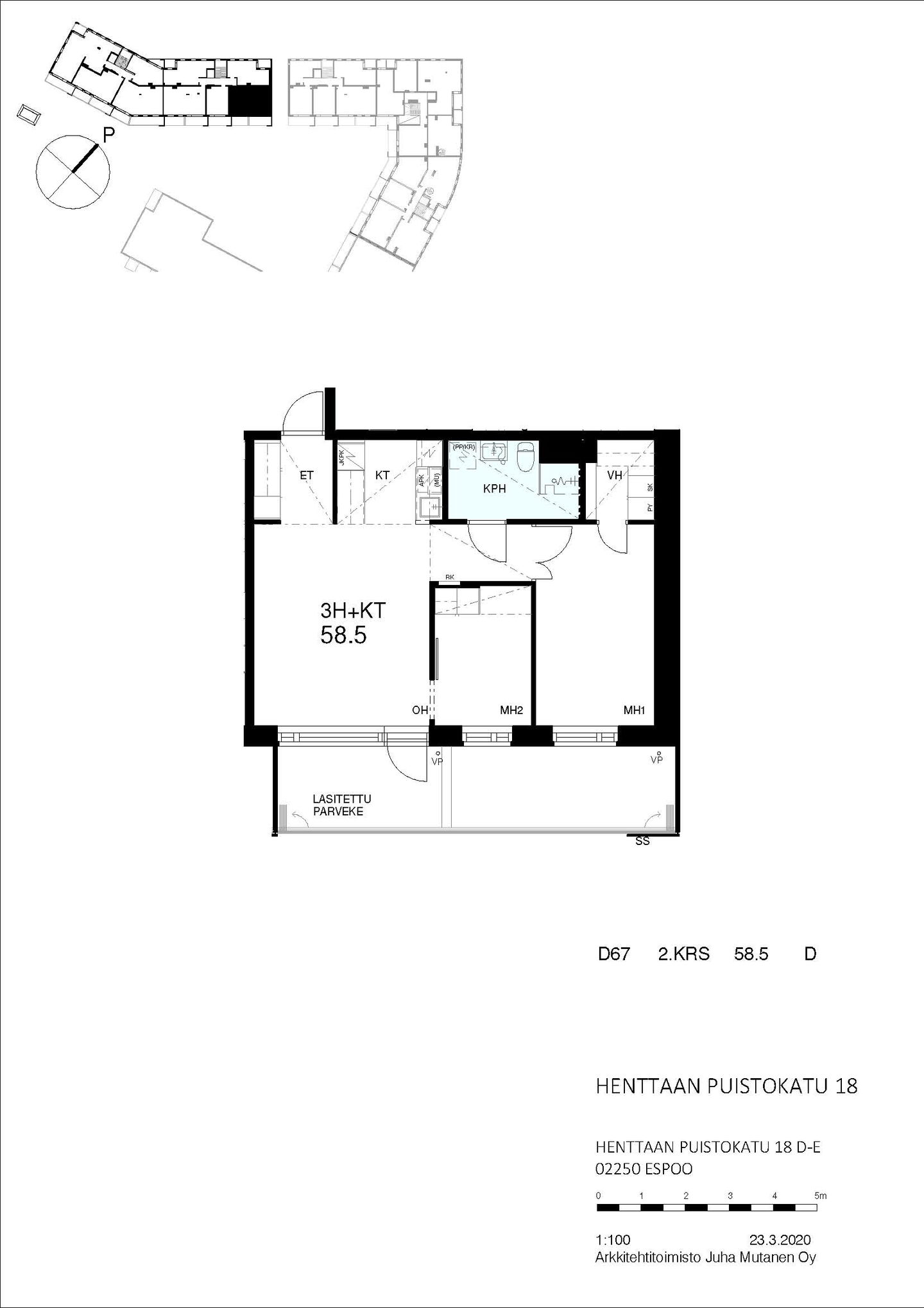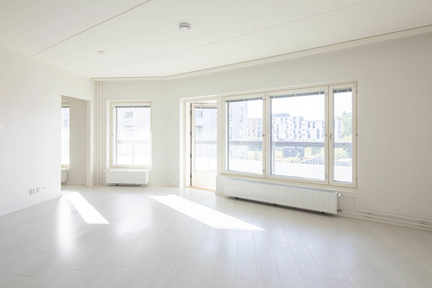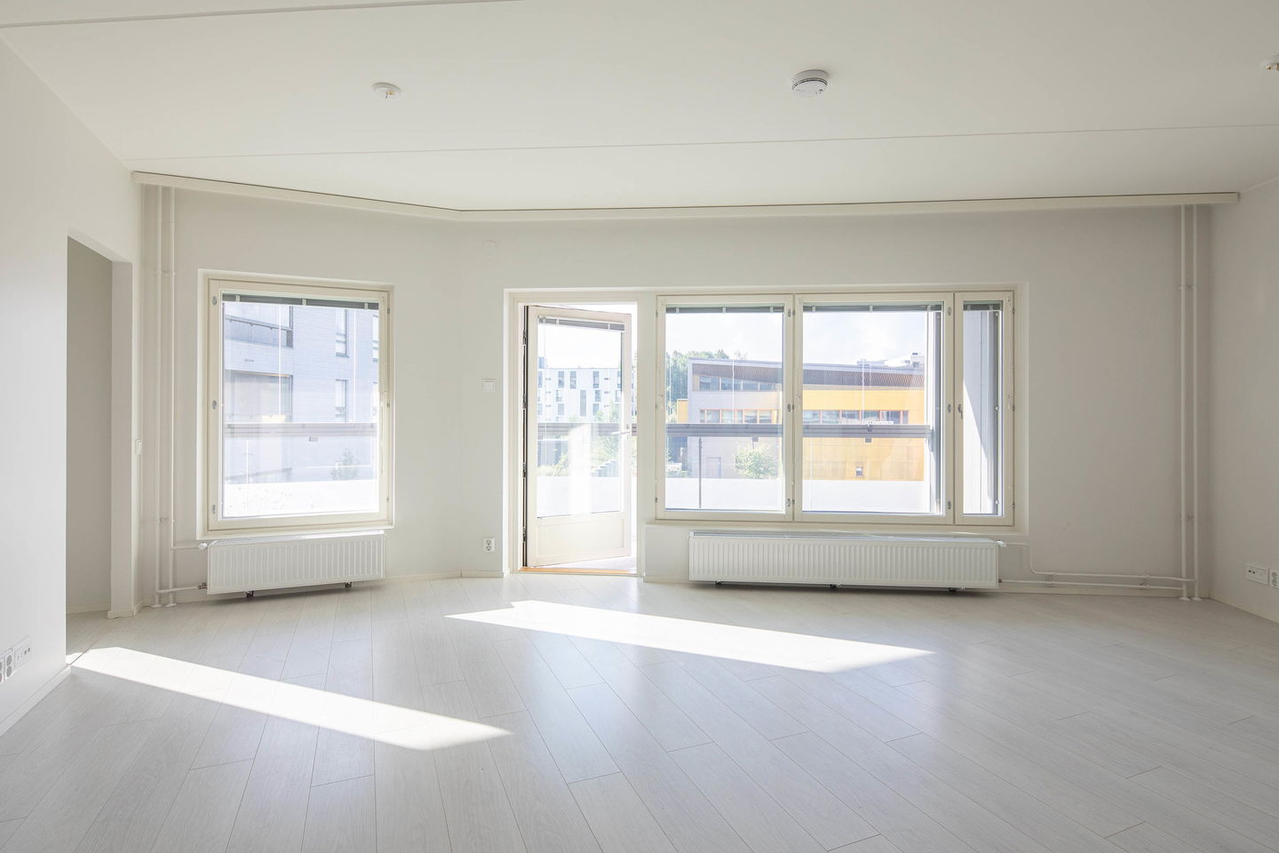 Valoisa kompakti kolmio vaikka pienelle perheelle. Asunnon keittiö aukeaa olohuoneeseen ja mahdollistaa seurustelun arjessa ja juhlassa ruuanlaiton ohessa.