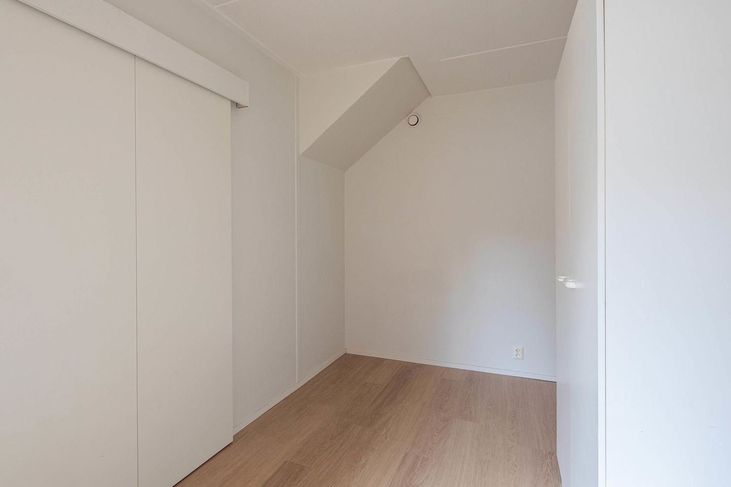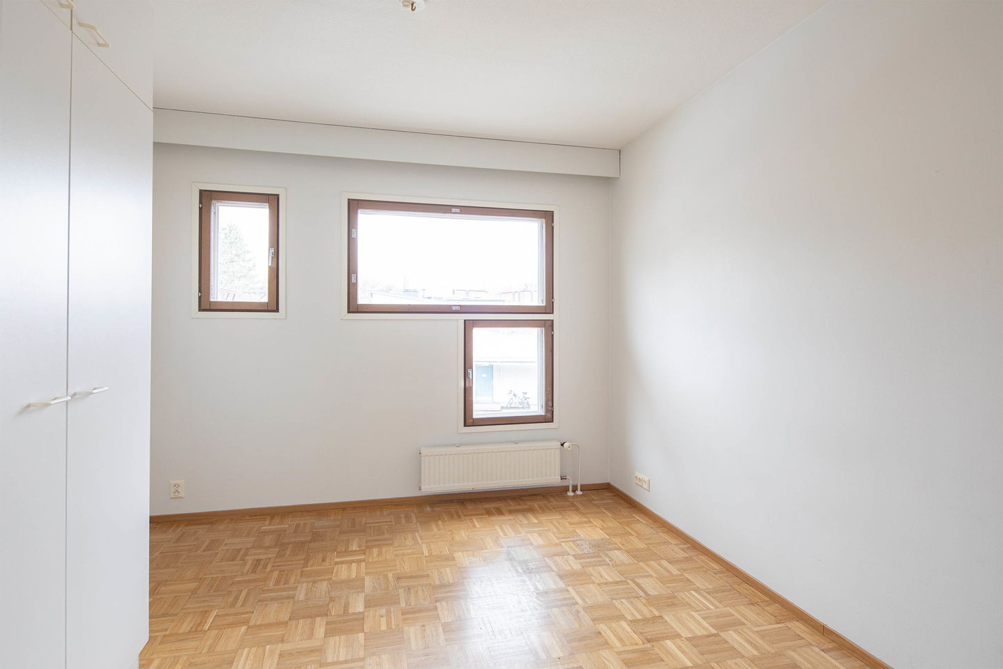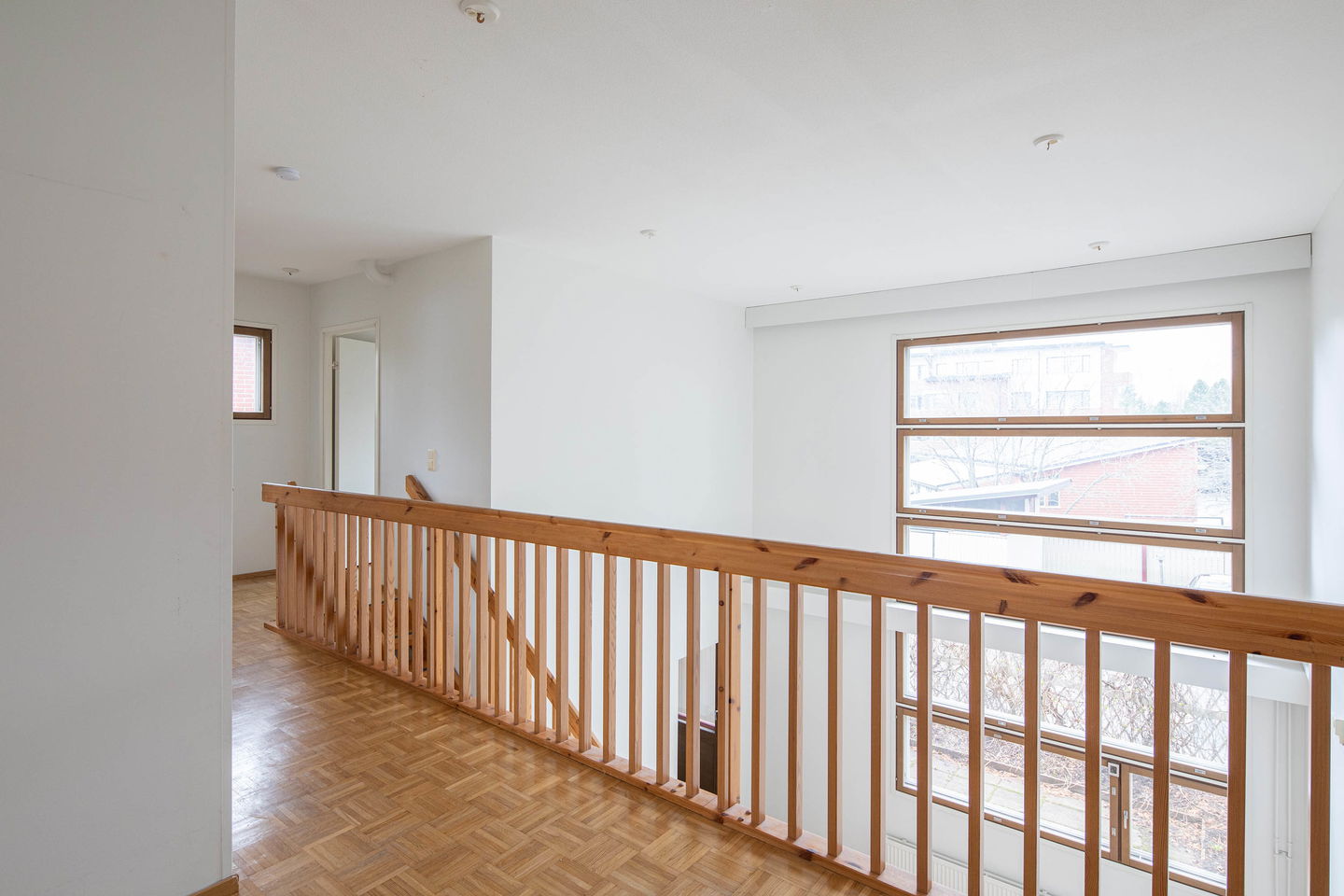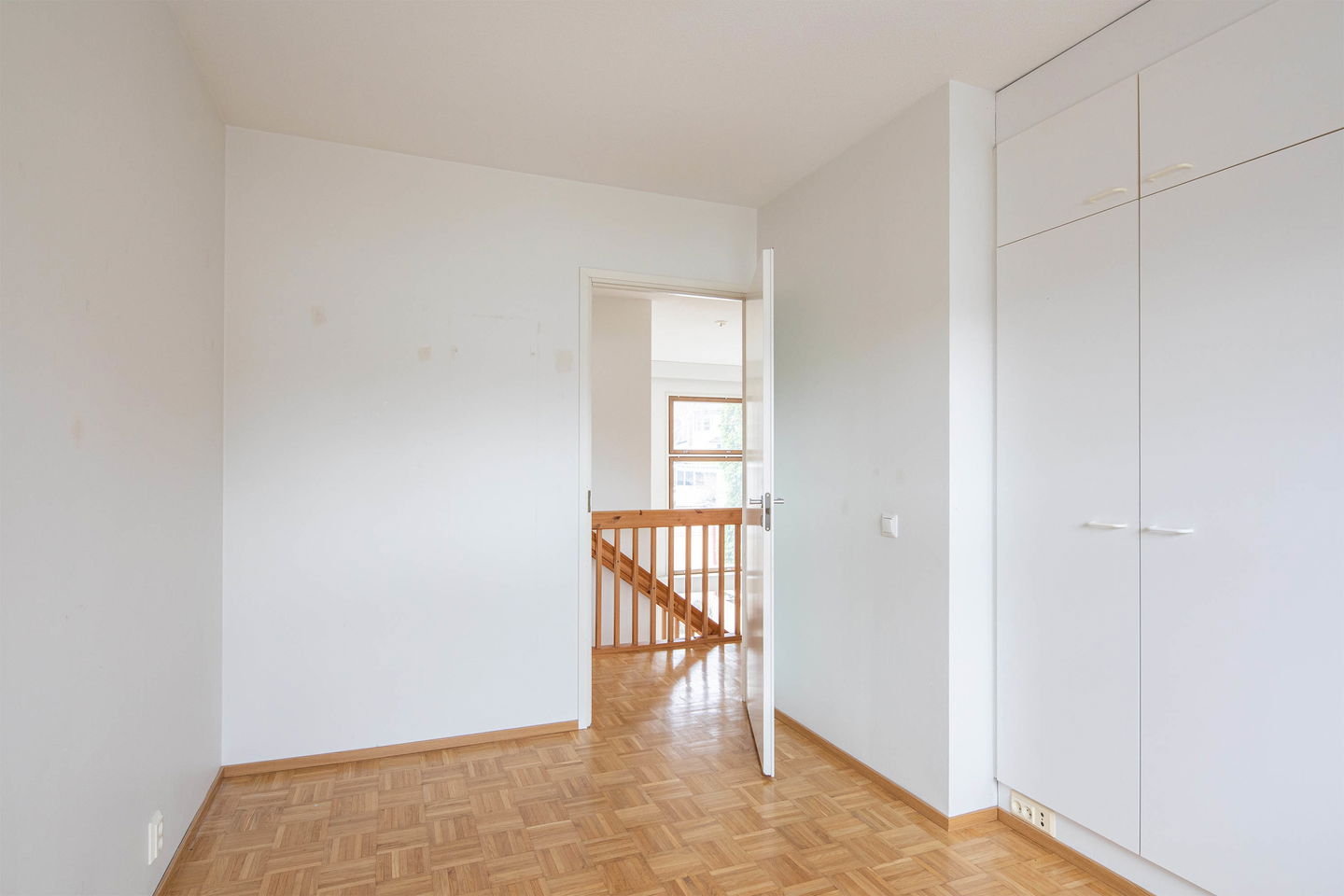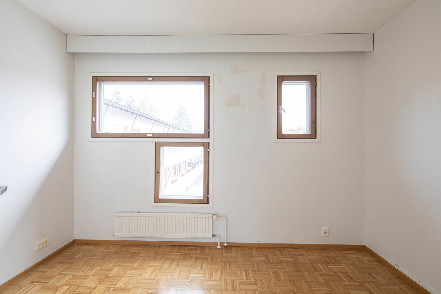 Yläkerrassa sijaitsee kaksi reilun kokoista makuuhuonetta, joissa molemmissa on kiinteät kaapit. Lisäksi yläkerrassa on monikäyttöinen varasto, josta on kulku parvekkeelle – tämä tila voidaan muuntaa omien tarpeiden mukaan esimerkiksi työhuoneeksi tai lisähuoneeksi.