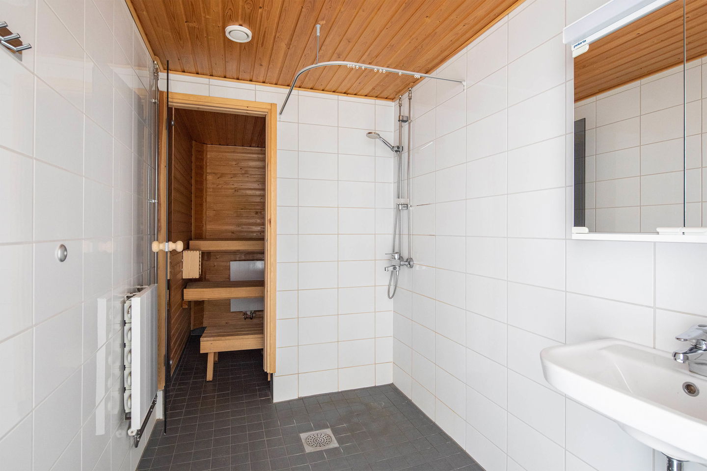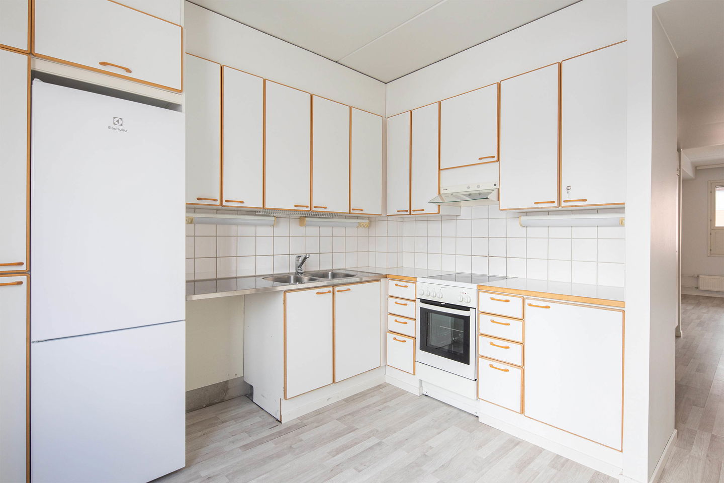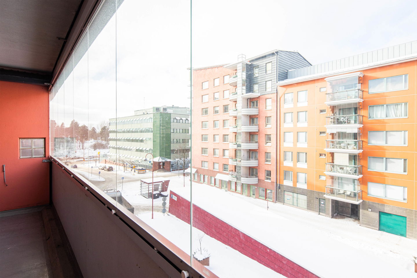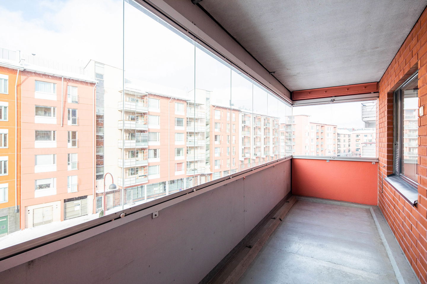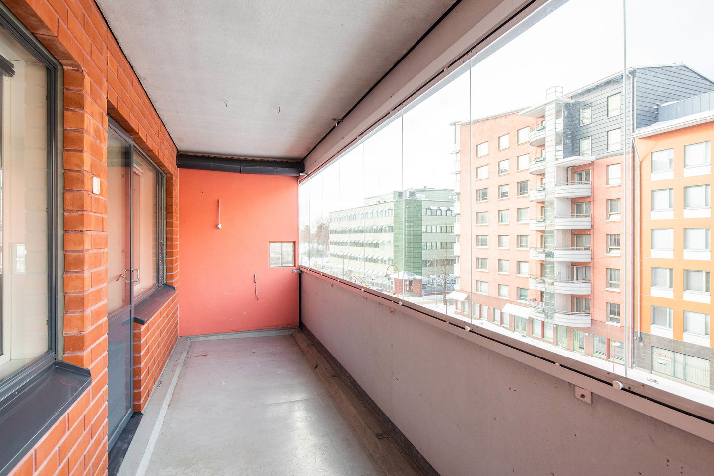 Asunto sijaitsee talon neljännessä kerroksessa ja sen pohjaratkaisu on toimiva ja selkeä. Olohuoneesta on kulku huoneiston levyiselle, lasitetulle parvekkeelle, joka tarjoaa mukavasti lisätilaa asumiseen pitkälle syksyyn. Keittiö on erillinen ja sijoittuu omaan tilaansa. Asunnossa on kaksi makuuhuonetta, jotka sijoittuvat rauhallisesti eri puolille huoneistoa. Kylpyhuoneen yhteydessä on sauna. Erillinen wc on juuri uusittu, poikkeuksellisen tilava ja sinne on mahdollista asentaa pyykinpesukone, mikä lisää arjen käytännöllisyyttä.