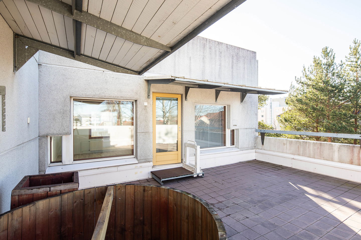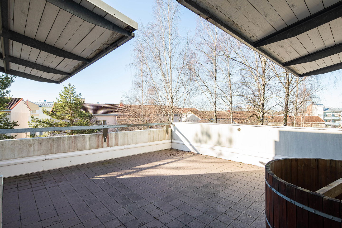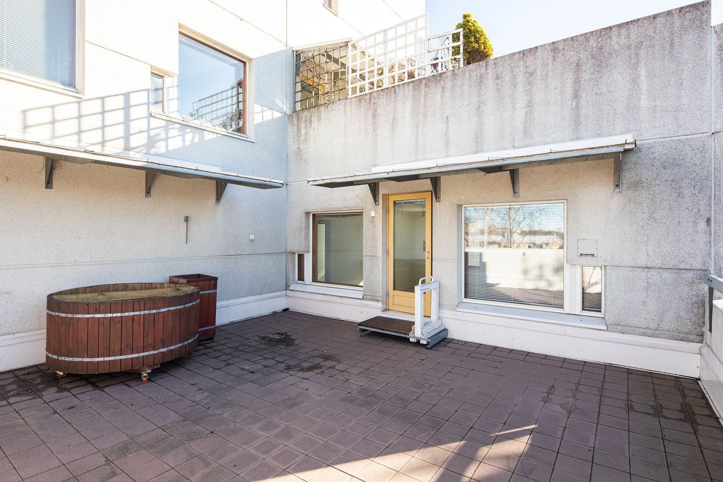 Kruununa asunnossa on sen valtava terassi, joka tarjoaa upeat näkymät kohteen rauhalliselle sisäpihalle. Terassi on täydellinen paikka rentoutumiseen ja viihtymiseen, ja se tarjoaa ihanasti tilaa yhdessäolon hetkiin ystävien ja perheen kanssa.