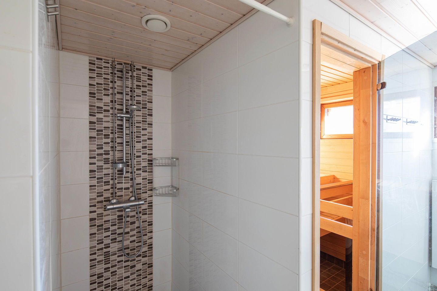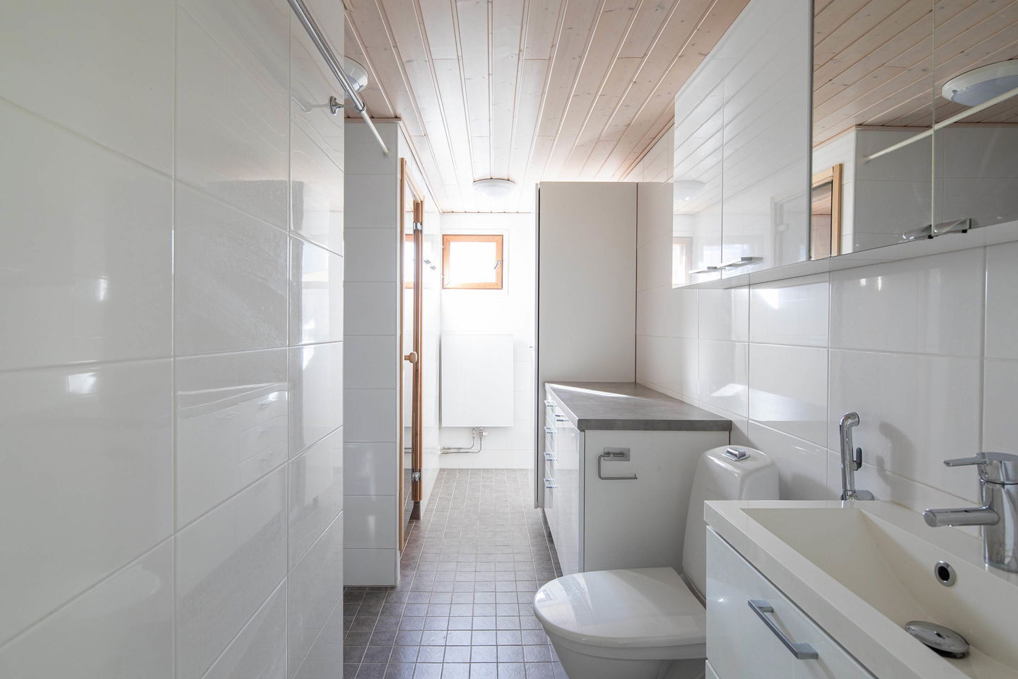 Asunnossa on yhteensä kolme makuuhuonetta, mikä tekee siitä ihanteellisen valinnan suuremmalle perheelle tai niille, jotka haluavat käyttää huoneita toimistona tai vierashuoneina. Kylpyhuone on tyylikkäästi laatoitettu. Erillinen wc helpottaa arjen rutiineja.