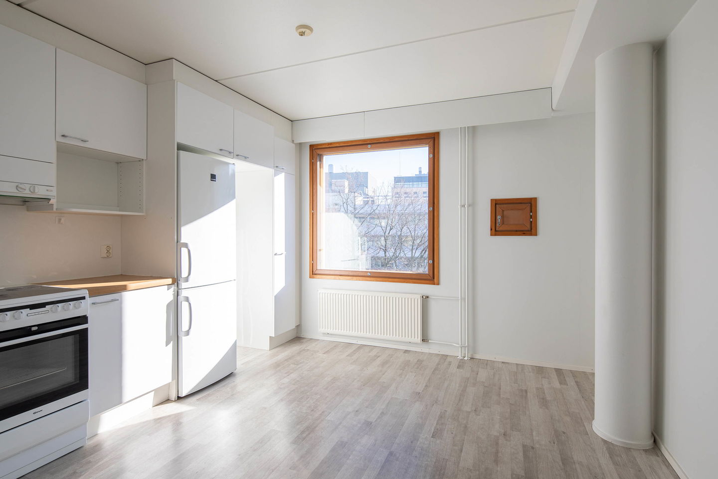 Asunnon suuret ikkunat päästävät runsaasti luonnonvaloa sisään, mikä tekee huoneista valoisia ja ilmavia. Erillinen keittiö tarjoaa hyvin tilaa ruoanlaittoa varten. Olohuone on tilava ja kodikas, joka tarjoaa tilaa rentoutumiseen ja viihtymiseen ystävien ja perheen kesken.