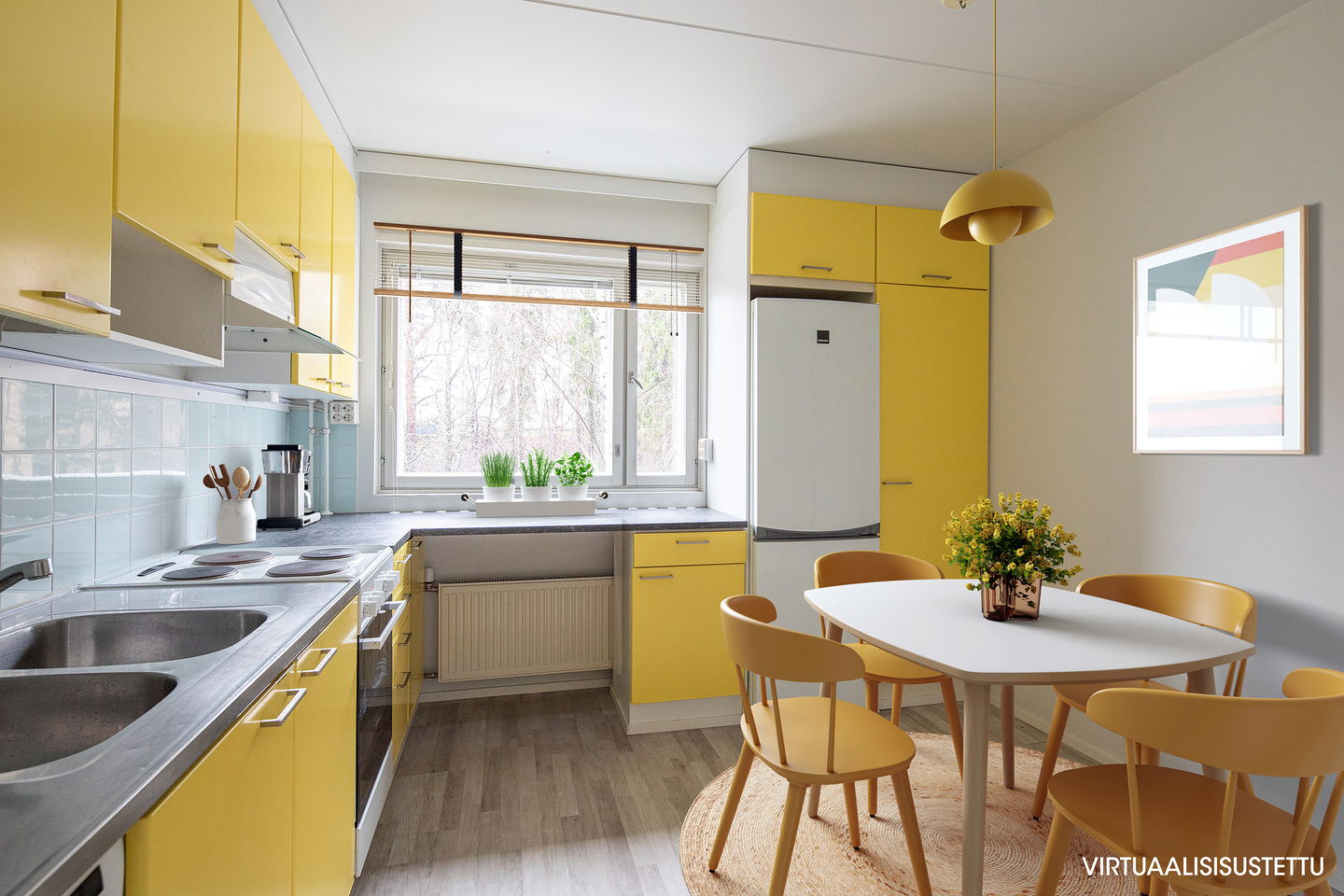 Persoonallinen keittiö tuo kotiin luonnetta ja tarjoaa mukavan paikan ruoanlaittoon ja yhdessäoloon. Asunnossa on siisti kylpyhuone omalla saunalla sekä erillinen wc, mikä lisää asumismukavuutta. Parveke avautuu rauhalliselle sisäpihalle, tarjoten viihtyisän paikan rentoutua.