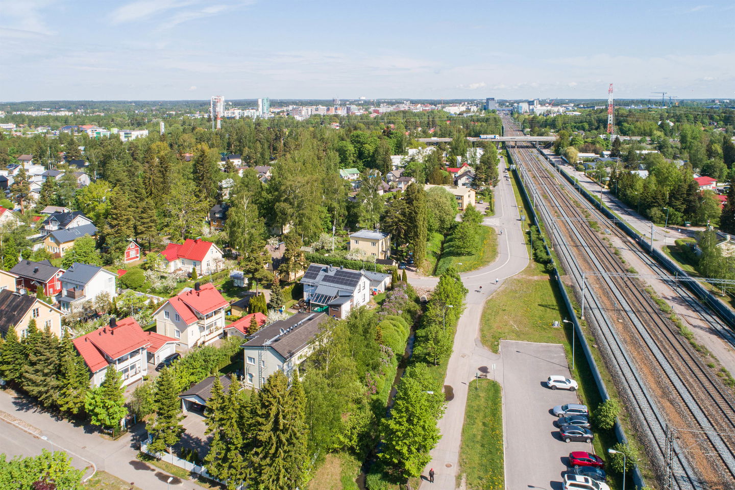 Alueella on päiväkoteja, koulu ja medialukio. Palvelut lähellä, mm. apteekki, kirjasto, terveysasema ja ruokakauppa. Puistojen lisäksi ulkoilemaan kutsuvat esimerkiksi urheilukentät ja ulkokuntosali. Bussipysäkki talon edessä, juna-asemalle parinsadan metrin kävelymatka. Tikkurilan palvelut muutaman junapysäkin päässä.