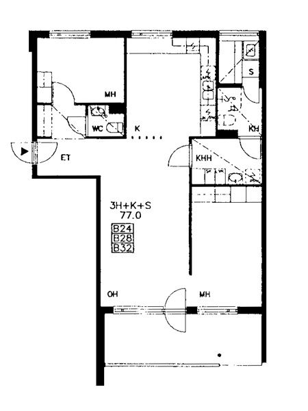 • Huoneistotyyppi 2H+K+S