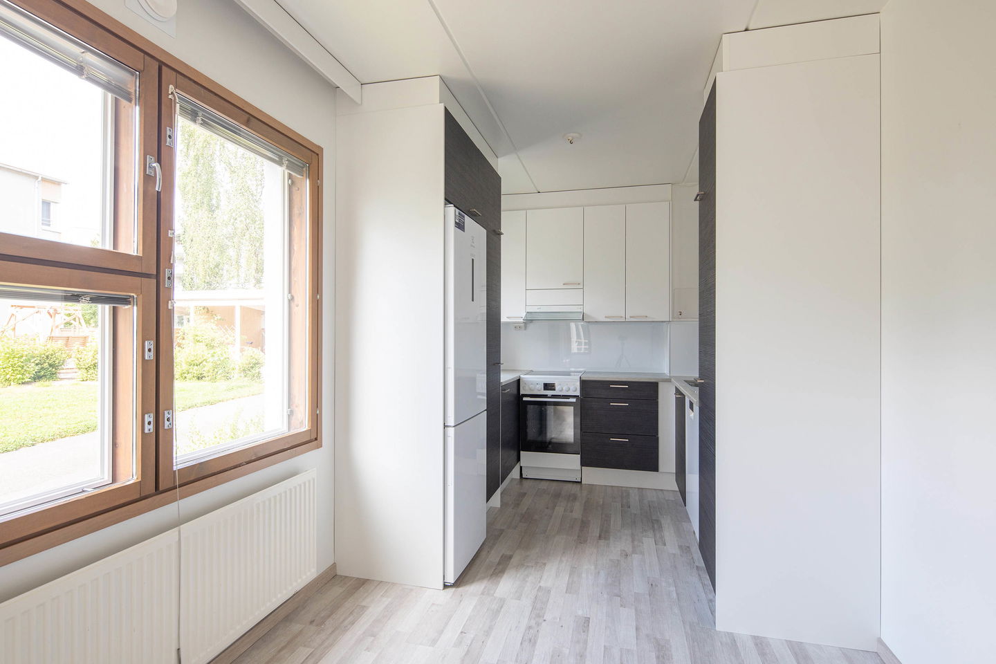 Asunnossa on tilava olohuone, josta pääsee suurelle lasitetulle parvekkeelle, sekä rauhallinen makuuhuone. Keittiö on hyvin varusteltu ja tehokkaasti suunniteltu. Eteisestä säilytystilaa löytyy runsaasti. Asunnossa on oma sauna ja kylpyhuonetilat sekä erillinen WC, mikä lisää asumismukavuutta. Tutustu asuntoon ja jätä hakemus osoitteessa www.asuntosaatio.fi sekä sovi esittelystä sähköpostitse bertta.gylden@asuntosaatio.fi tai puhelimitse p. 020 161 2403