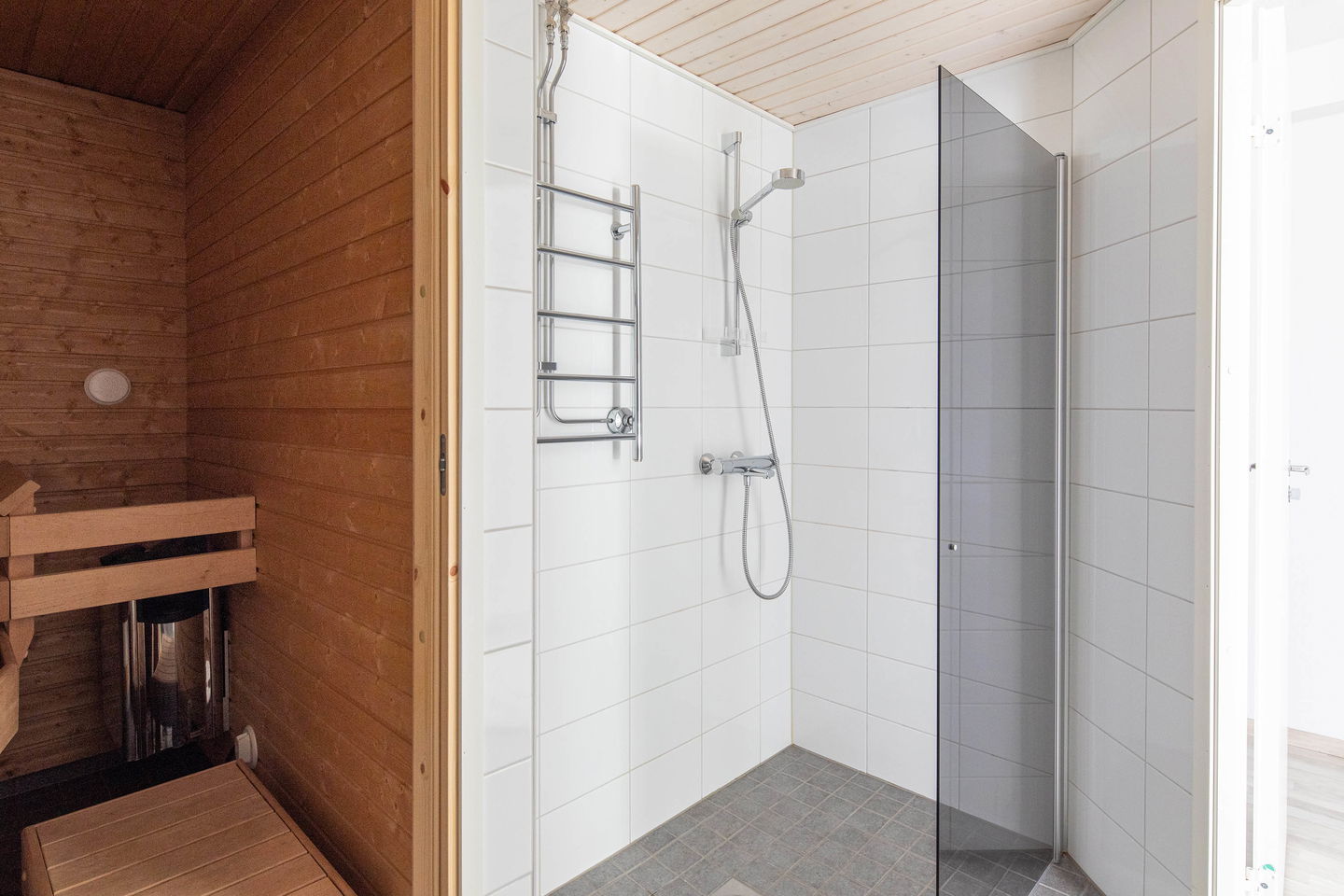 Asunnossa on tilava olohuone, josta pääsee suurelle lasitetulle parvekkeelle, sekä rauhallinen makuuhuone. Keittiö on hyvin varusteltu ja tehokkaasti suunniteltu. Eteisestä säilytystilaa löytyy runsaasti. Asunnossa on oma sauna ja kylpyhuonetilat sekä erillinen WC, mikä lisää asumismukavuutta.