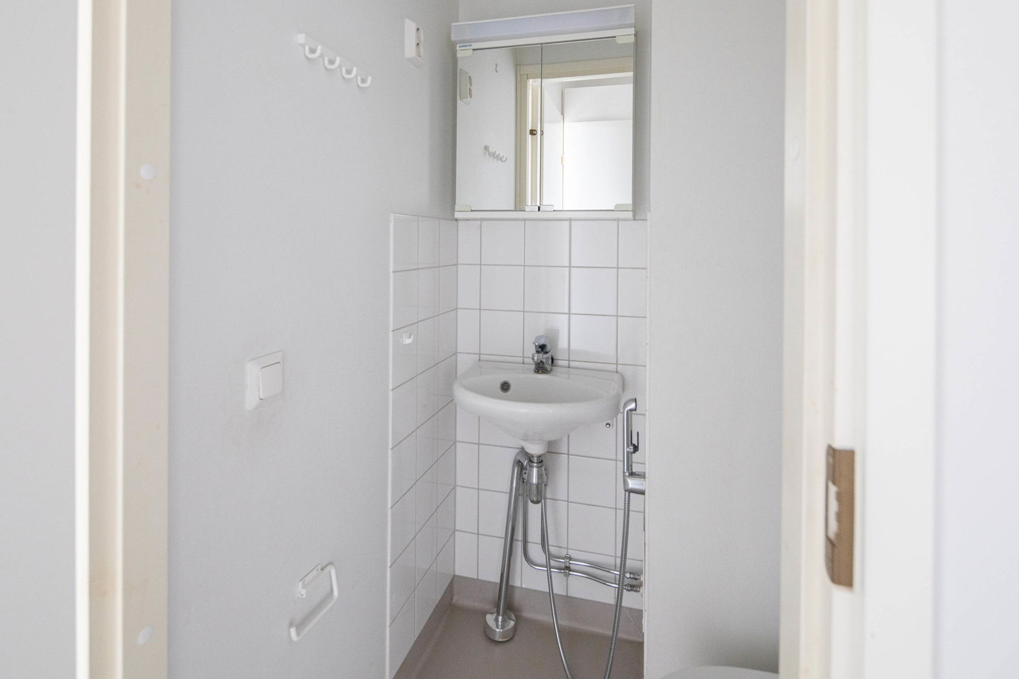 Sisäänkäynti johtaa eteiseen, jonka yhteydessä on erillinen WC ja vaatehuone. Eteisestä kuljetaan avaraan olohuoneeseen, joka yhdistyy keittiöön. Keittiössä on pitkä työtaso ja kaapistot sekä tilaa ruokailulle. Olohuoneesta on käynti ulos lasitetulle parvekkeelle.