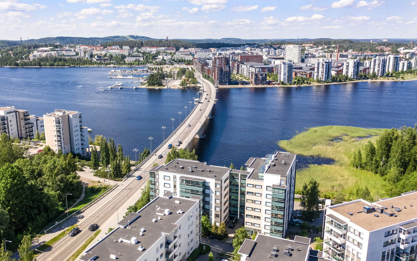 Tyylikäs kerrostalo aivan Jyväsjärven rannassa, rantaraitin varrella, Kuokkalan sillan kupeessa. Nopea yhteys keskustaan. Kuokkalan palvelut sijaitsevat kävelymatkan päässä Palveluihin kuuluvat muun muassa päivittäistavarakaupat, posti, apteekki, parturi-kampaamoja, kioski, kirkko, pizzeria, grilli. Lähistöllä myös päiväkodit ja koulut.