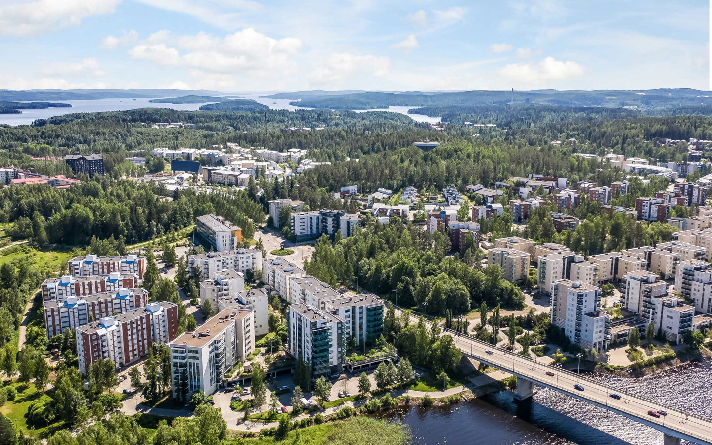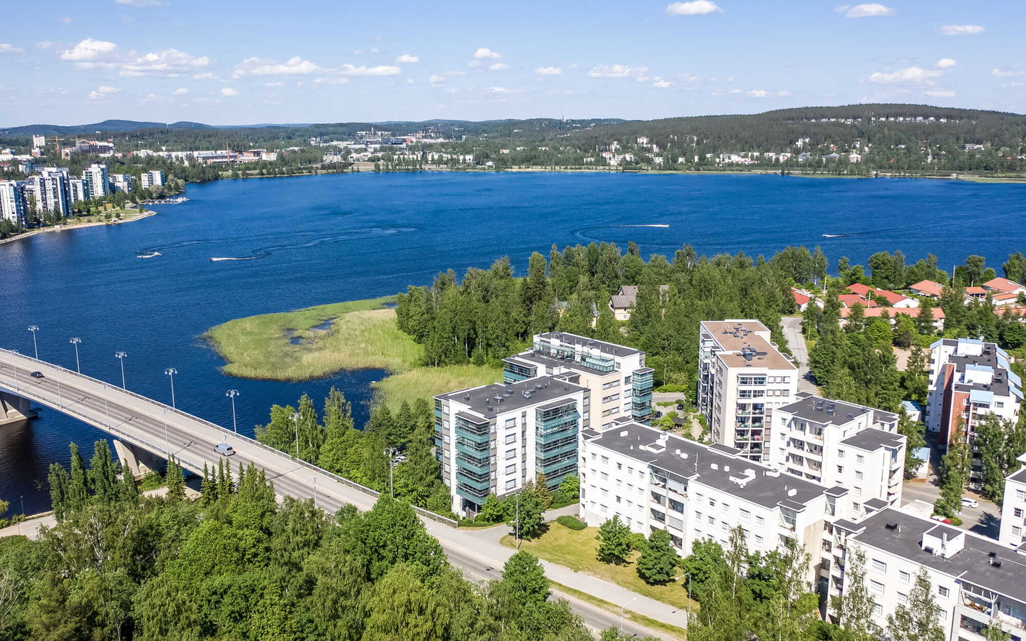 Tyylikäs kerrostalo aivan Jyväsjärven rannassa, rantaraitin varrella, Kuokkalan sillan kupeessa.