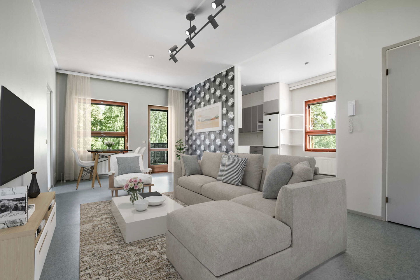 Tervetuloa valoisaan ja hyvin suunniteltuun kulmahuoneistoon, joka sijaitsee hissillisen talon 3. kerroksessa. Asunnon sijainti rakennuksen kulmassa tuo poikkeuksellisesti valoa kolmesta eri ilmansuunnasta, mikä lisää avaruutta ja viihtyisyyttä. Olohuone ja keittiö muodostavat avaran kokonaisuuden, josta on käynti omalle parvekkeelle. Keittiössä on hyvin työskentelytilaa, kaappisäilytystä sekä astianpesukonevalmius. Huoneiston kaksi makuuhuonetta joissa on reilusti kaappi- ja säilytystilaa. Kylpyhuoneesta löytyvät paikka pyykinpesukoneelle sekä ikkuna, joka tuo luonnonvaloa ja parantaa ilmanvaihtoa. Myös saunassa on ikkuna, mikä on mukava lisä – se tekee löylyhetkistä valoisampia ja miellyttävämpiä. Erillinen WC lisää arjen toimivuutta. Selkeä pohjaratkaisu, runsaasti luonnonvaloa tuovat ikkunat ja kulmahuoneiston rauhallinen sijainti tekevät tästä kodista erittäin miellyttävän kokonaisuuden.