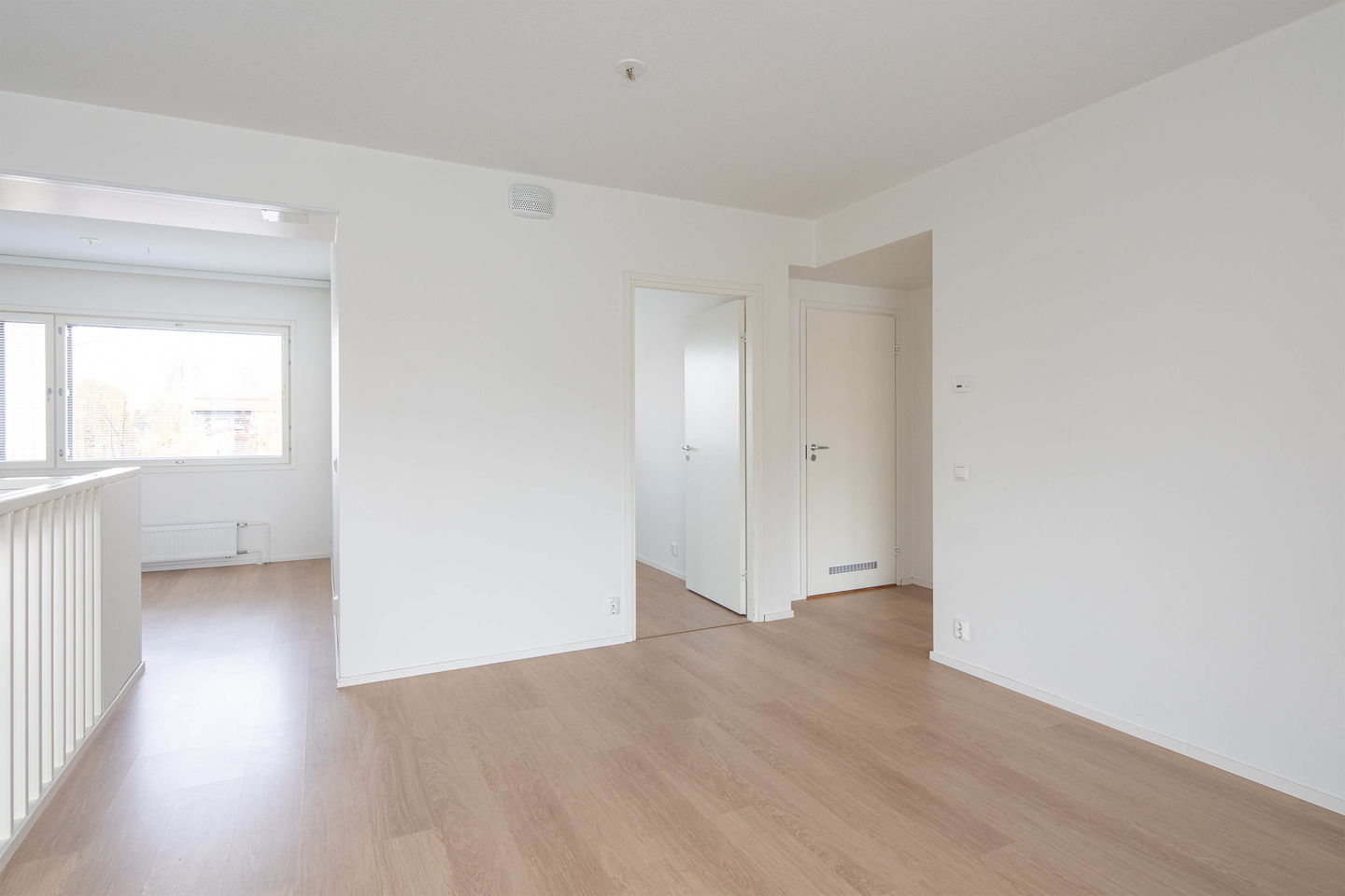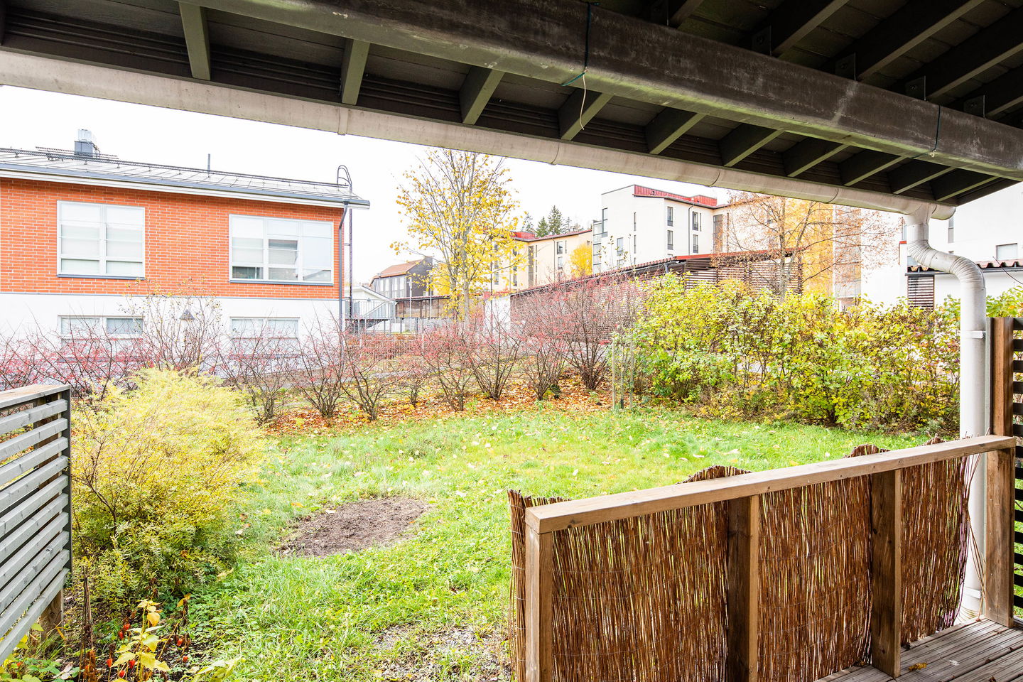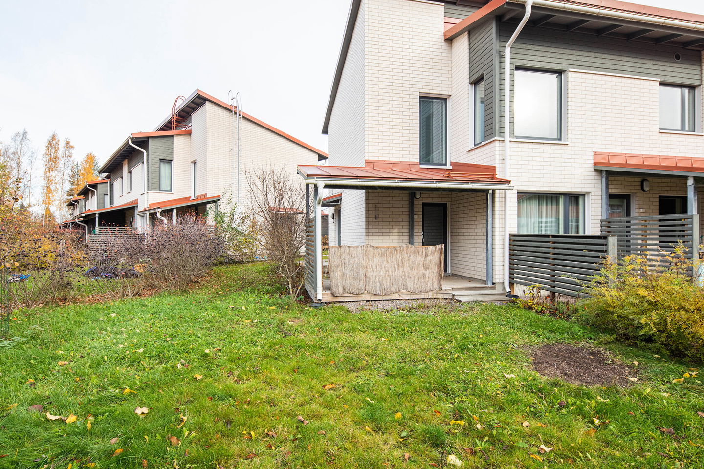 Pienelle perheelle sopiva persoonallinen päätyasunto tontin kulmassa jossa on reilun kokoinen piha päiväkodin puolelle. Sisääntulokerroksessa on iso eteinen ja raput ylös sekä varasto/vaatehuone. Eteisestä on käynti terassille. Yläkerrassa on varsinaiset asuintilat, kaksi pienehköä makuuhuonetta, olohuone ja keittiö sekä kylpyhuone jonka yhteydessä on kodinhoitotila. Muutostyönä on asennettu sälekaihtimet ikkunoihin (kunnossapitovastuu asukkaalla). Löytyy myös lämmintä ja kylmää varastotilaa sekä autopaikka on saatavilla.