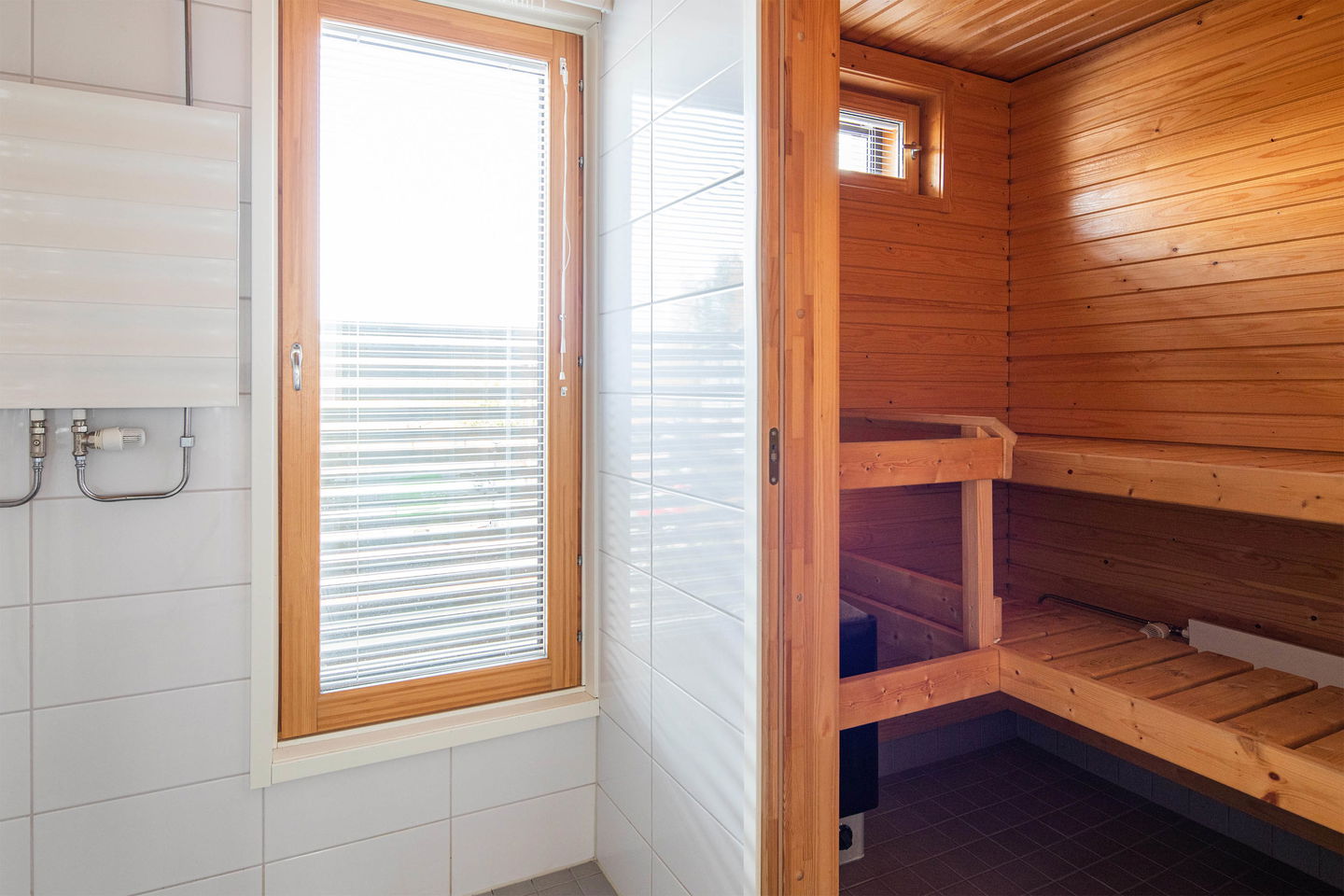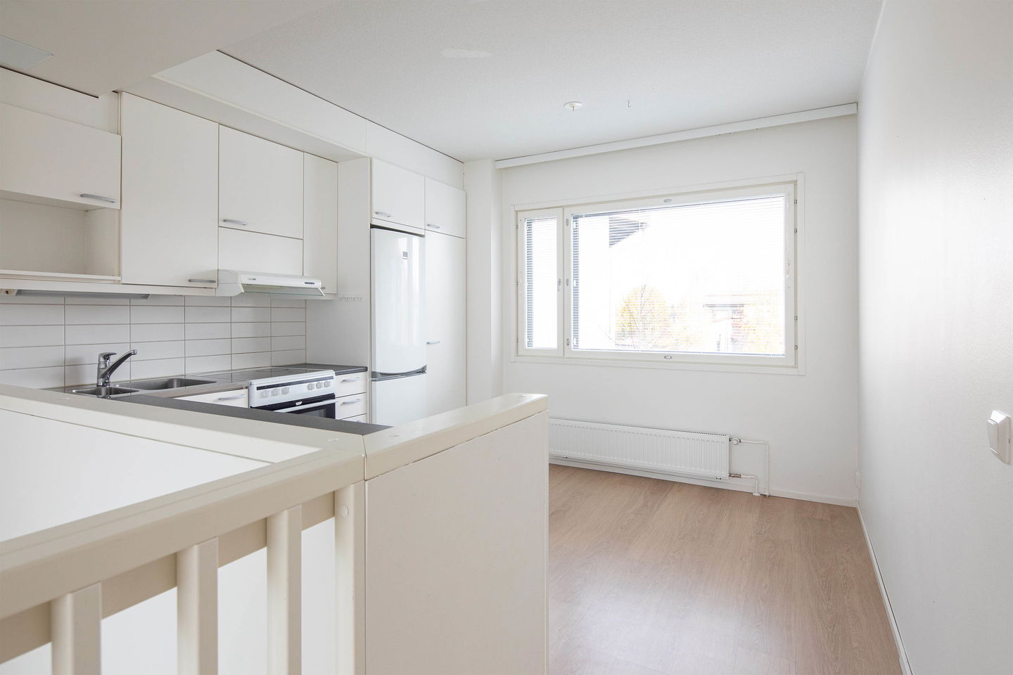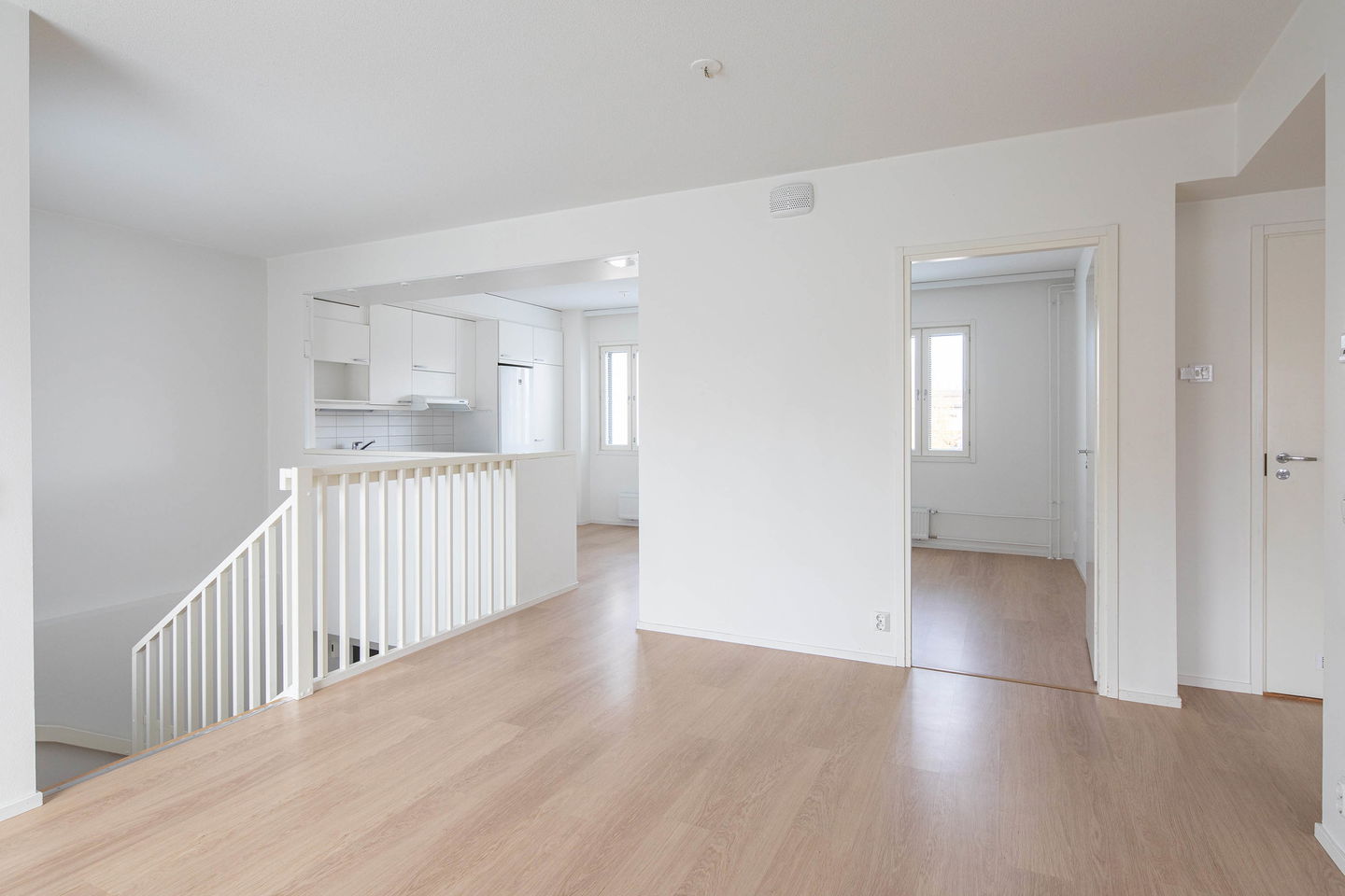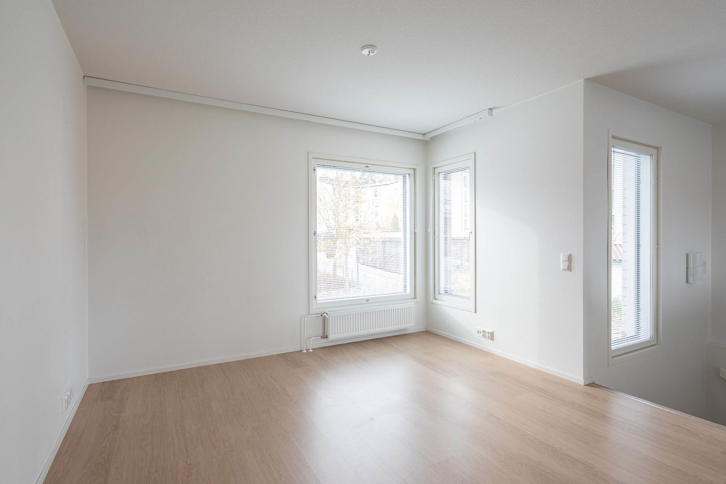 Pienelle perheelle sopiva persoonallinen päätyasunto tontin kulmassa jossa on reilun kokoinen piha päiväkodin puolelle. Sisääntulokerroksessa on iso eteinen ja raput ylös sekä varasto/vaatehuone. Eteisestä on käynti terassille. Yläkerrassa on varsinaiset asuintilat, kaksi pienehköä makuuhuonetta, olohuone ja keittiö sekä kylpyhuone jonka yhteydessä on kodinhoitotila. Muutostyönä on asennettu sälekaihtimet ikkunoihin (kunnossapitovastuu asukkaalla). Löytyy myös lämmintä ja kylmää varastotilaa sekä autopaikka on saatavilla.