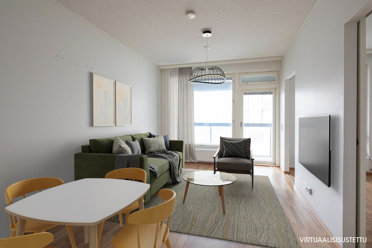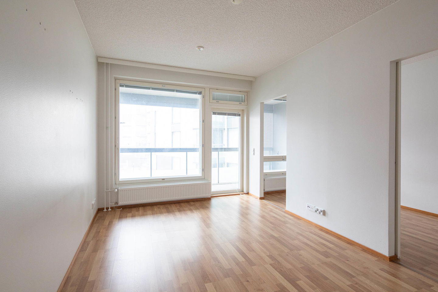 Näppärän kokoinen kaksio muuttovalmiina! Lasitettu parveke on koko asunnon levyinen. Säilytystilaa saa vaatehuoneesta.