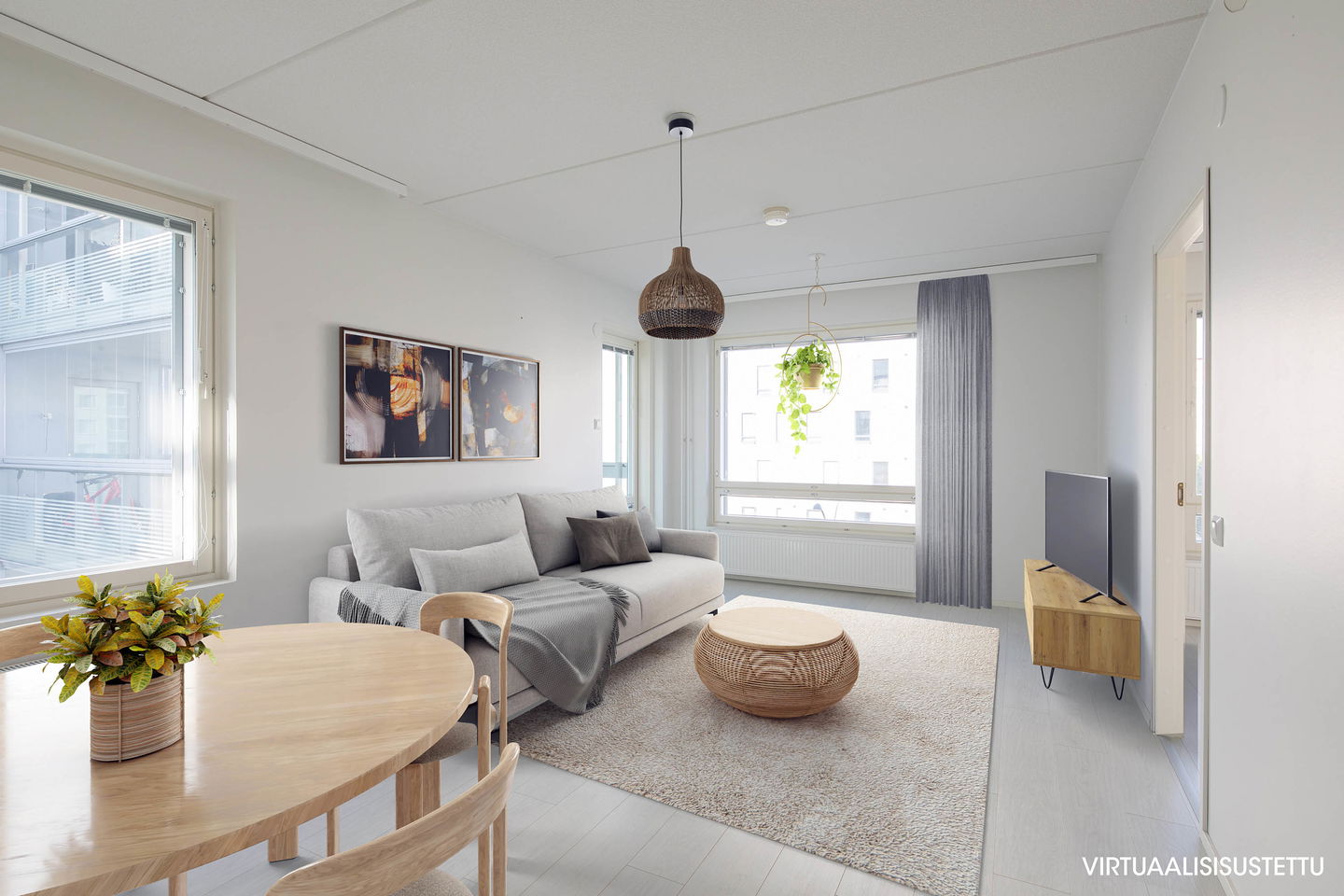 Kompakti, heti vapaa valoisa kolmio kolmannessa kerroksessa. Iso ja valoisa yhdistetty olo-ruokailuhuone, lasitettu parveke aamun ja iltapäivän aurinkoon. Rauhallinen talo ja loistavat liikenneyhteydet. Jätä hakemus www.asuntosaatio.fi