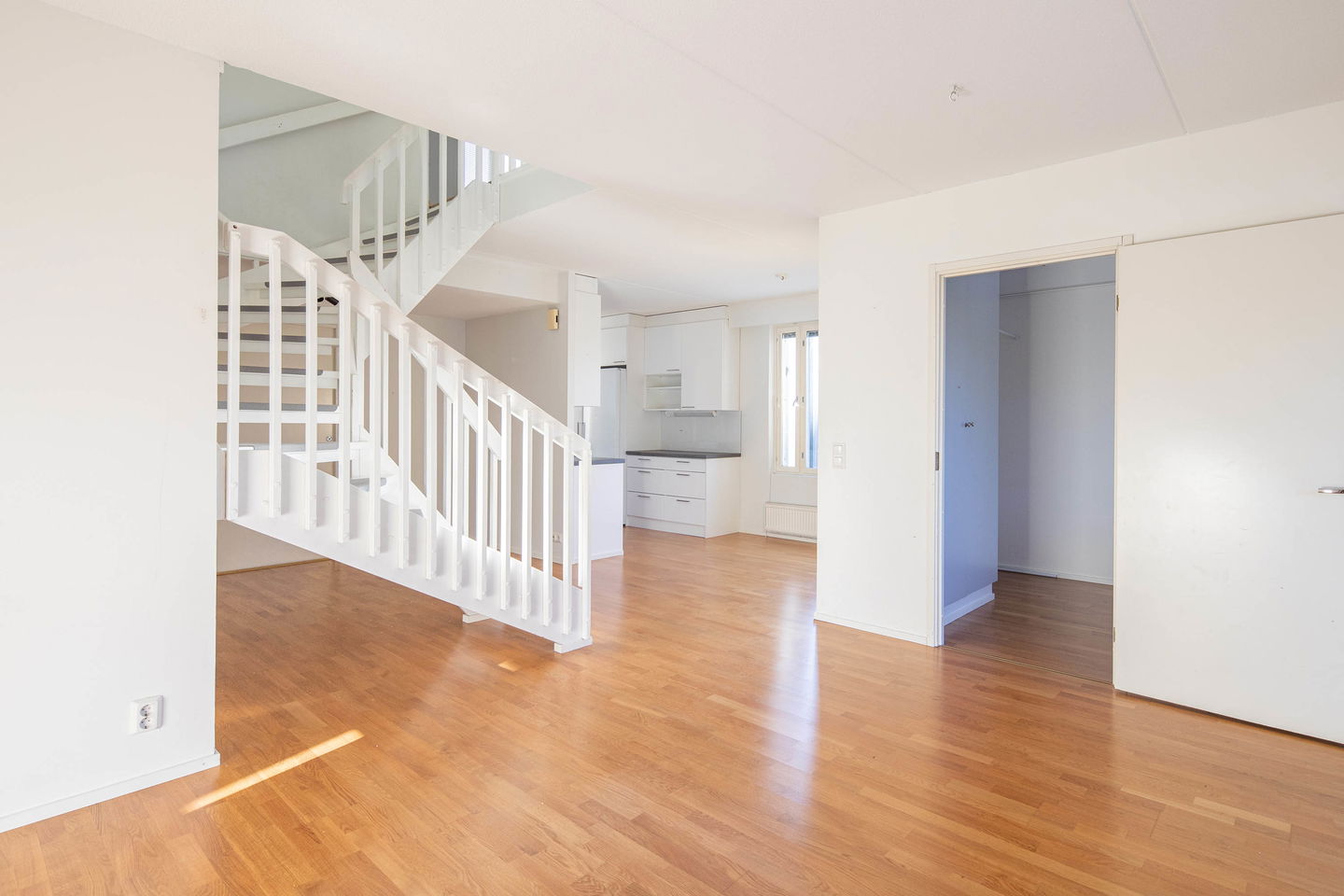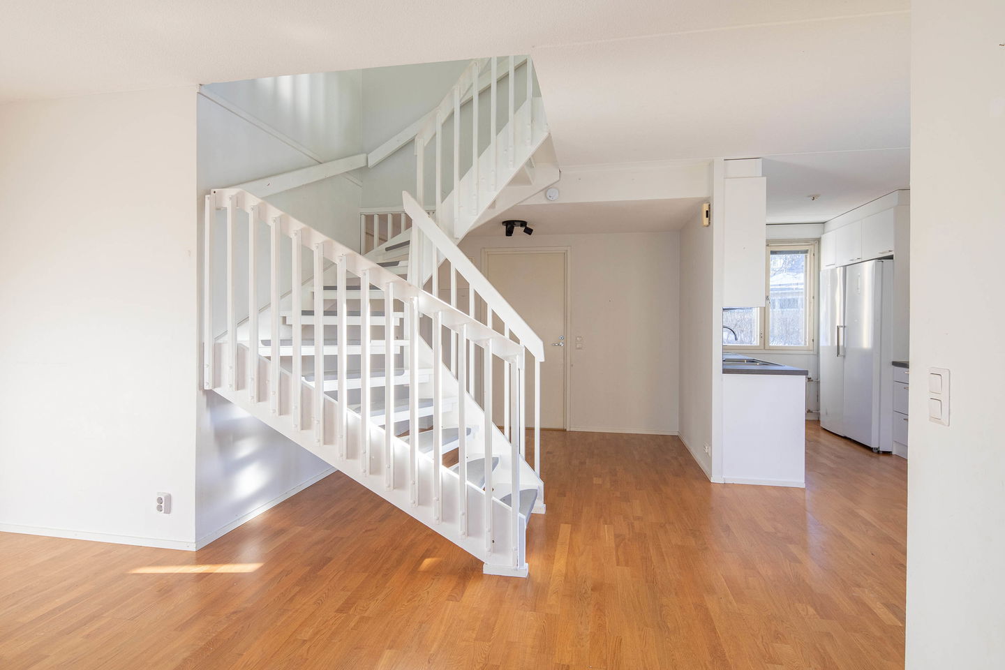 Kaksikerroksinen koti, jossa alakerran avoin keittiö–olohuone on luonnonvalon täyttämä ja arkeen sopivan selkeä. Yläkerta tarjoaa omat rauhalliset makuuhuoneet sekä kylpyhuoneen, ja tilava säilytysratkaisu tekee kokonaisuudesta käytännöllisen. Tämä koti sopii sinulle, joka arvostat rauhallista tunnelmaa ja toimivaa tilanjakoa kahdessa kerroksessa. Asunto myös mahdollista vuokrata. Jätä vuokrahakemus www.asuntosaatio.fi.